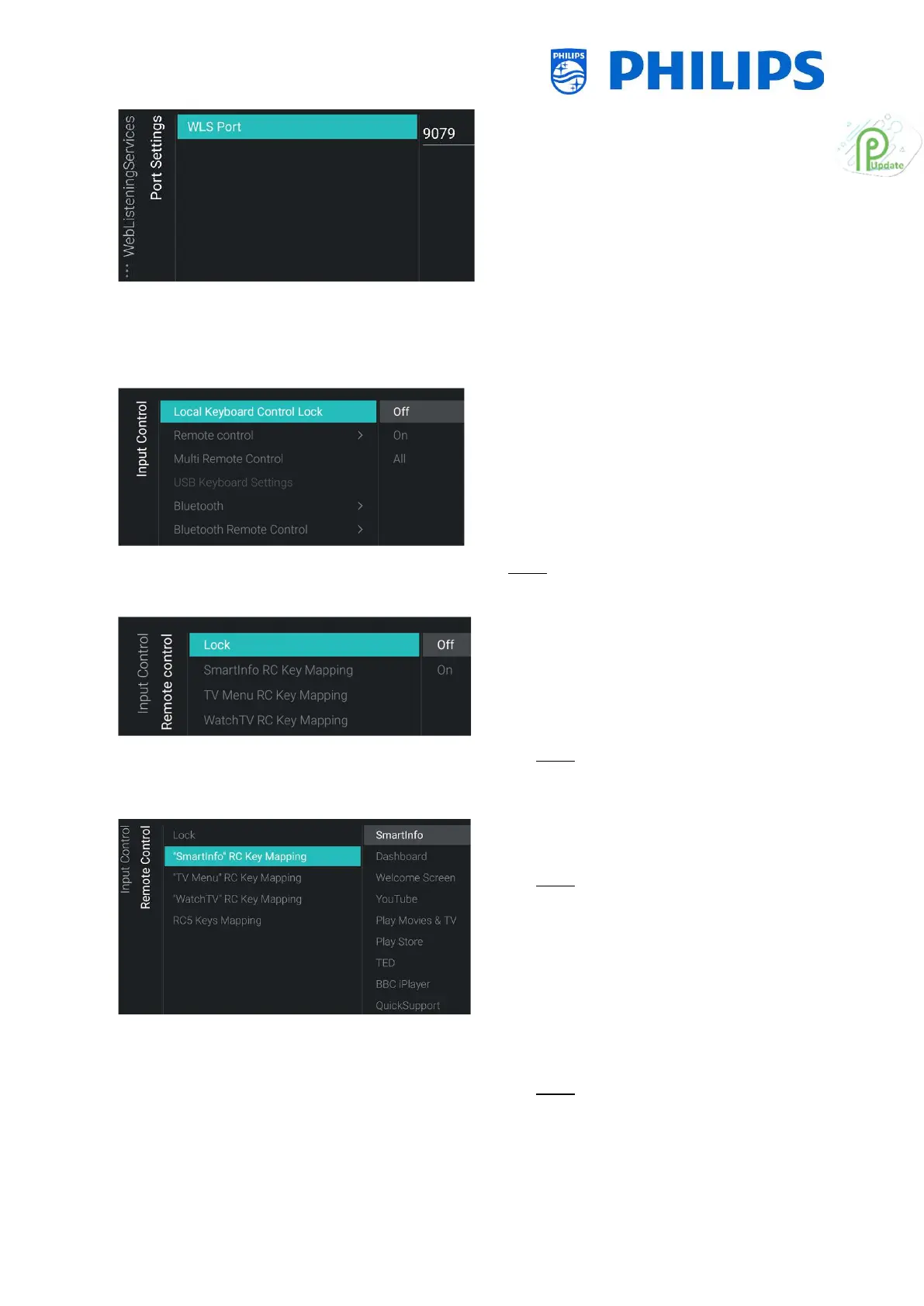 o [SmartInfo RC Key Mapping]: You can map the