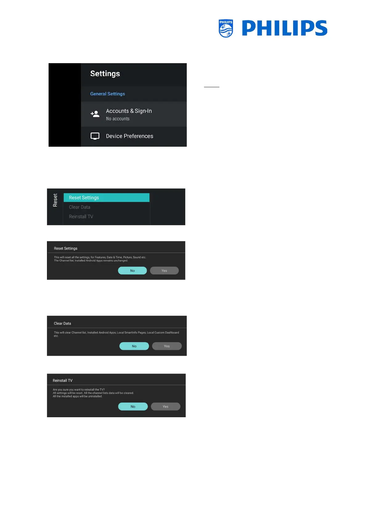 All the settings will be reset to the factory