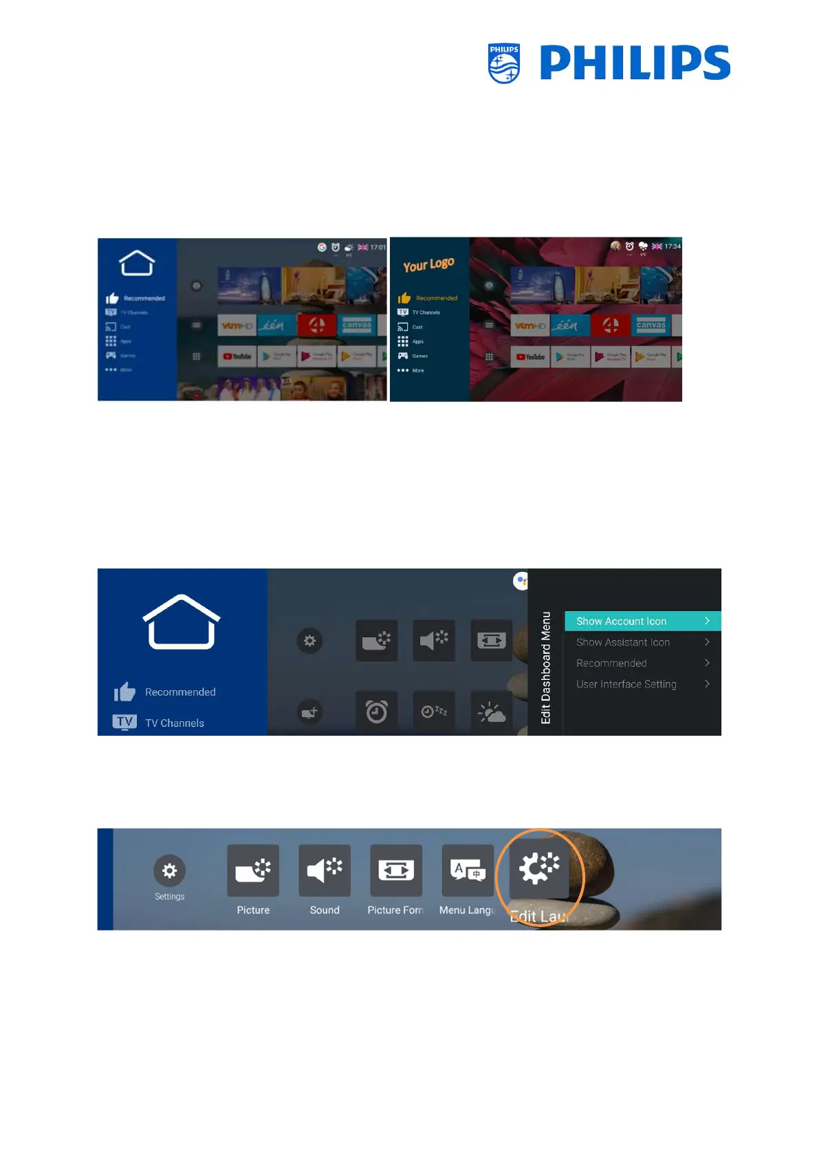 Settings][Dashboard][Select Dashboard][Philips Home] and press “OK”.