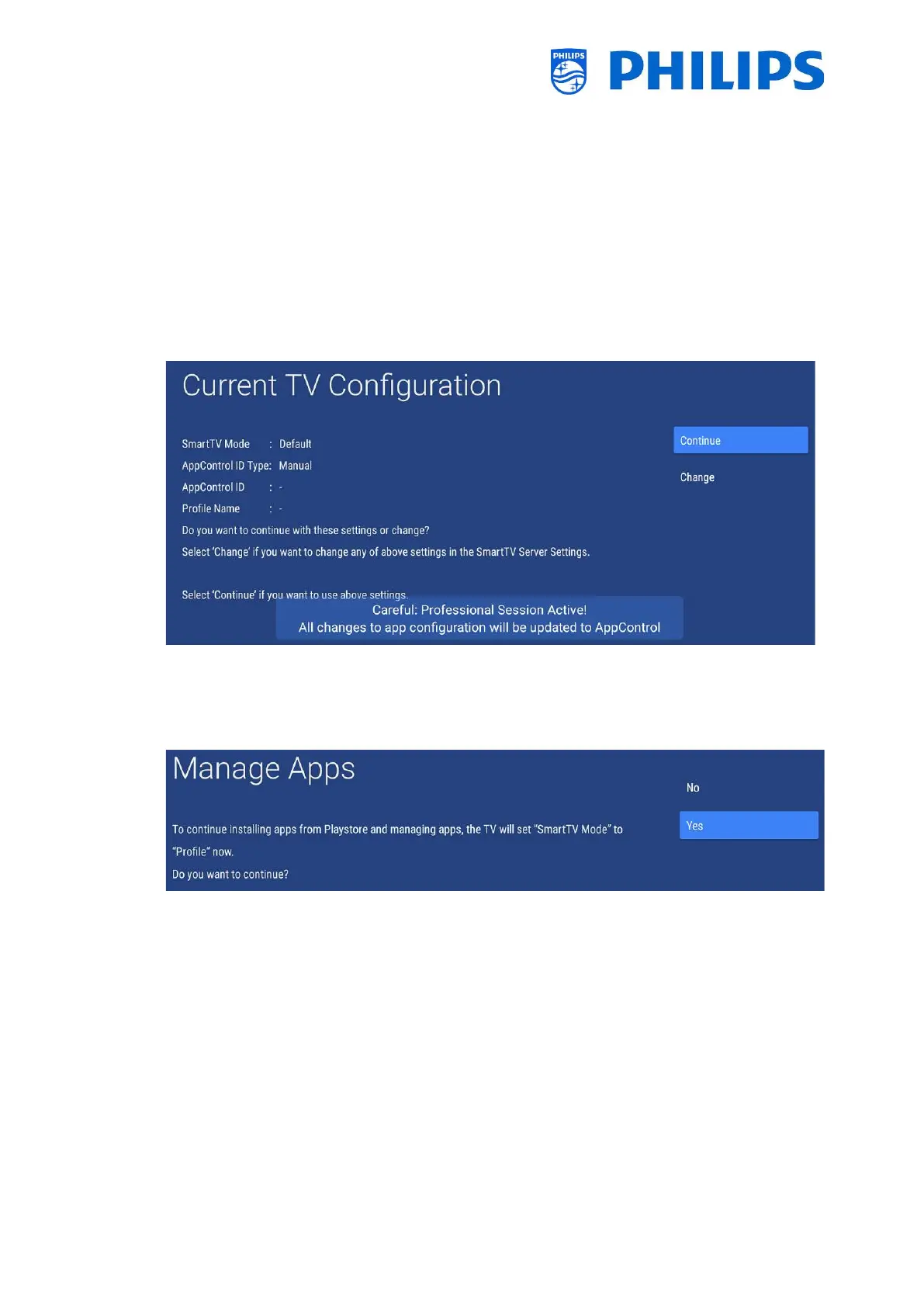 You will see an overview of the current settings asking is you want to [Continue] or [Change]