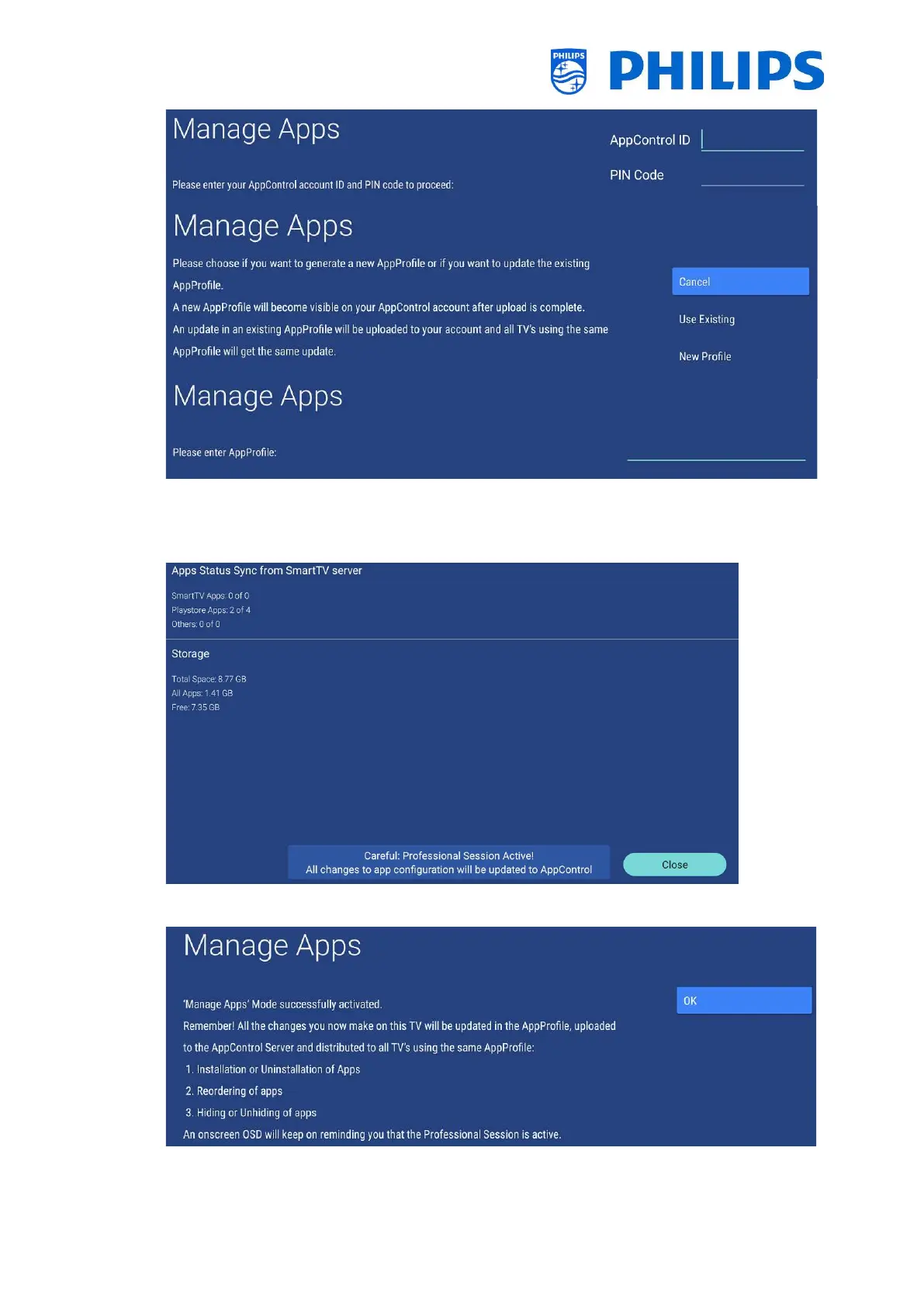Next, you will get a confirmation screen that the Manage Apps mode is successfully activated