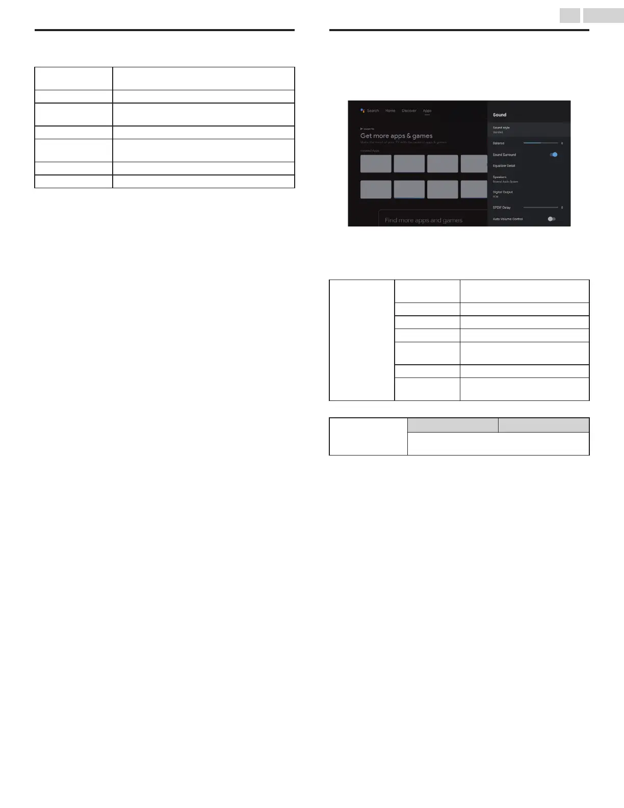 format of the broadcasting, some sound settings are not available.