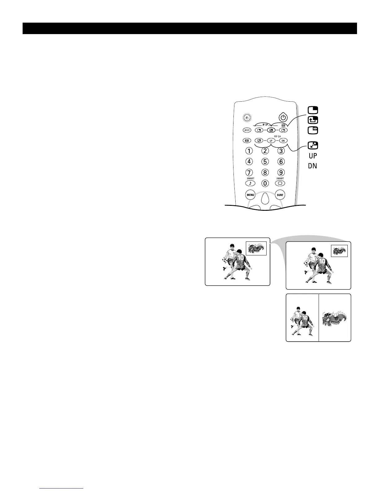 Press the PIP CH UP/DN keys to cycle through the chan-