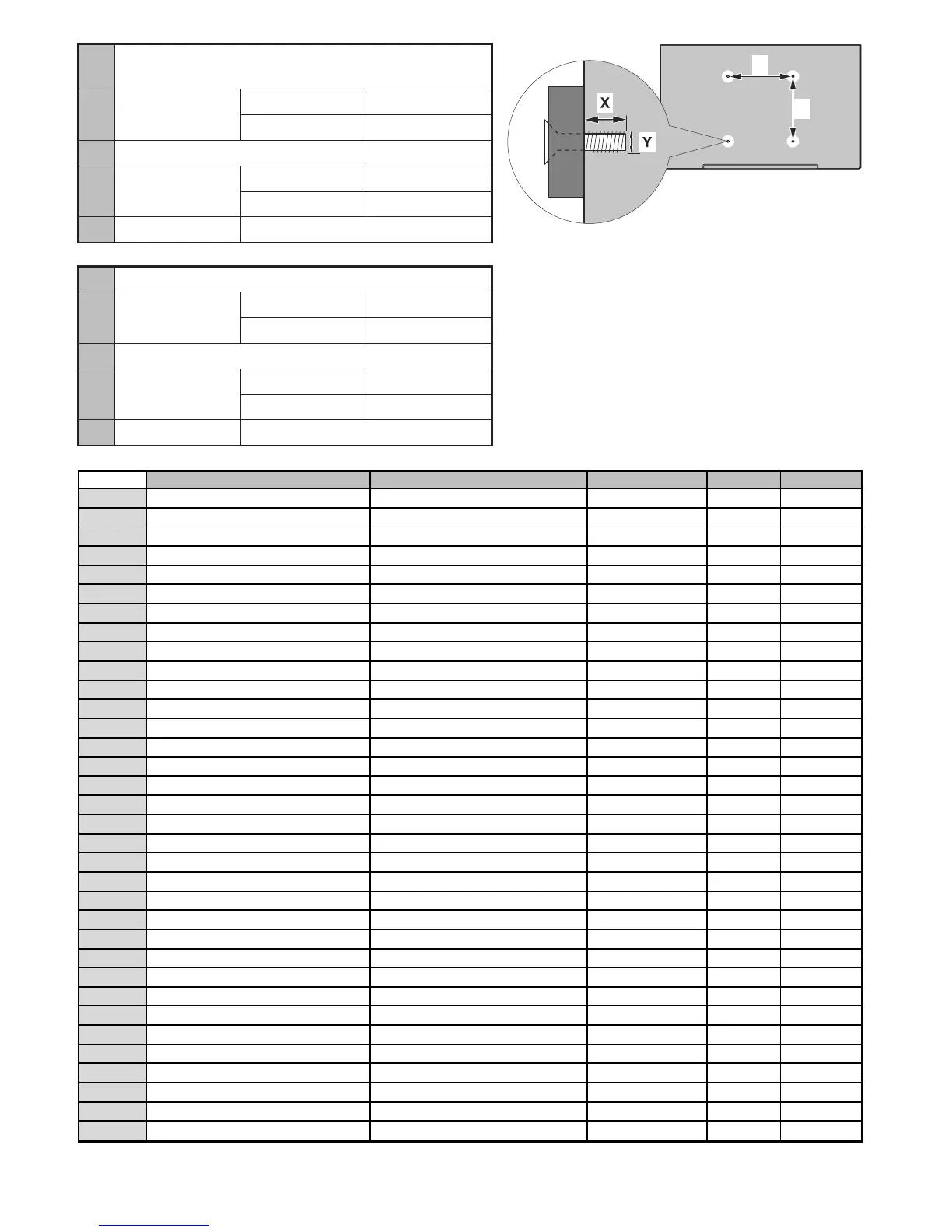 Polski WYMIARY DO MONTAŻU NAŚCIENNEGO VESA Rozmiary szablonu otworów (mm)