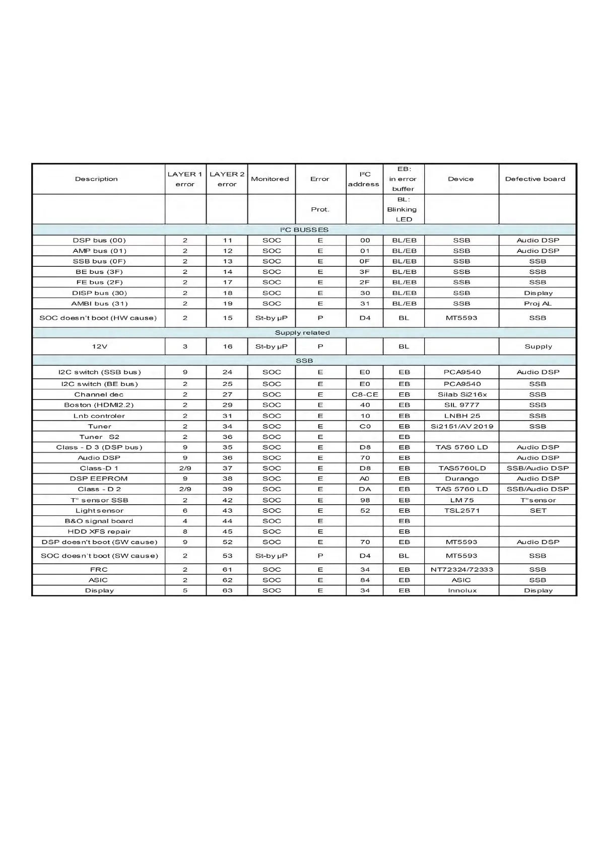In this chassis only layer 2” error codes are available and point to problems on the SSB. They are triggered by LED blinking