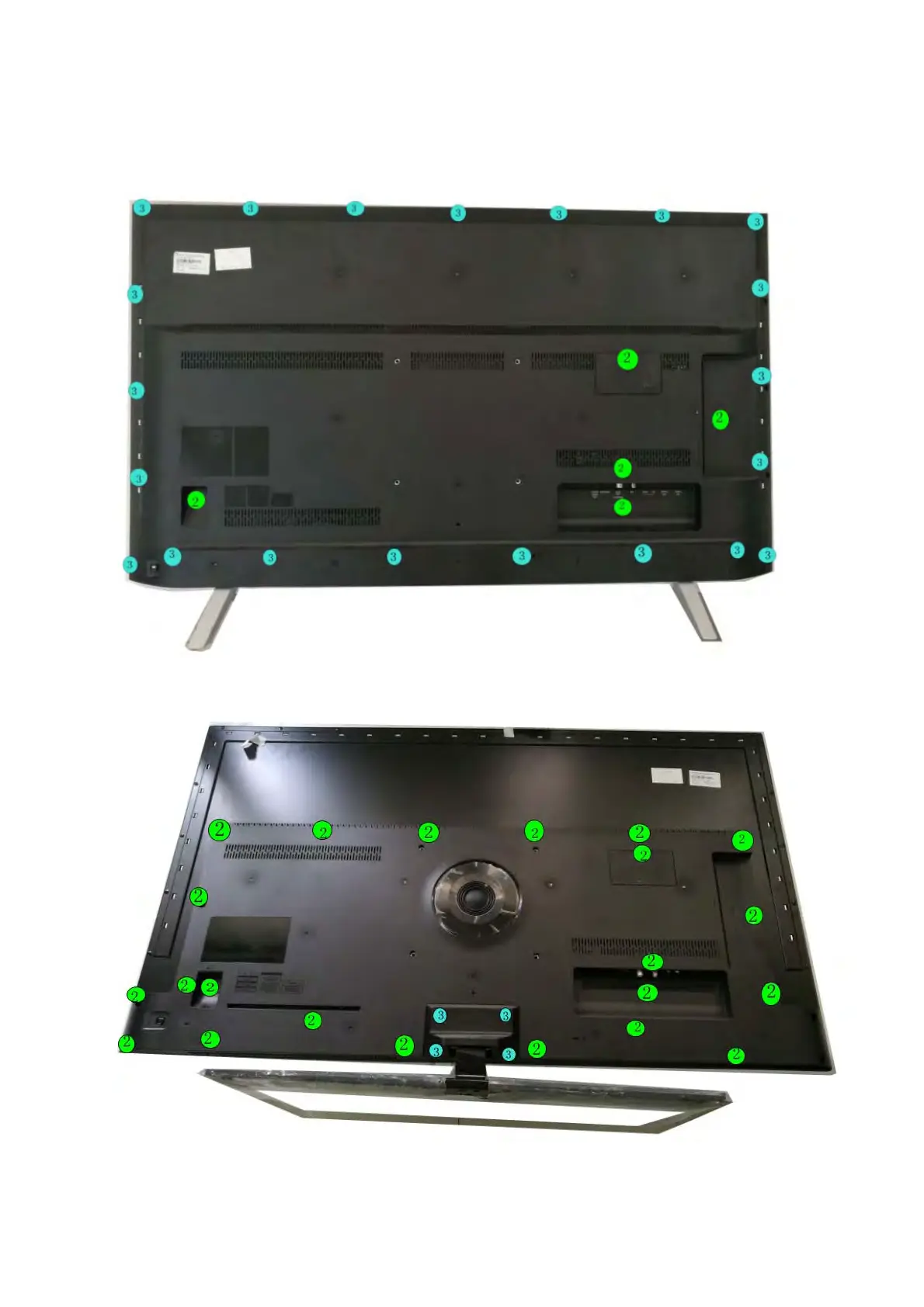 2. Gently lift the rear cover from the TV. Make sure that wires and cables are not damaged while lifting the rear cover from the set.