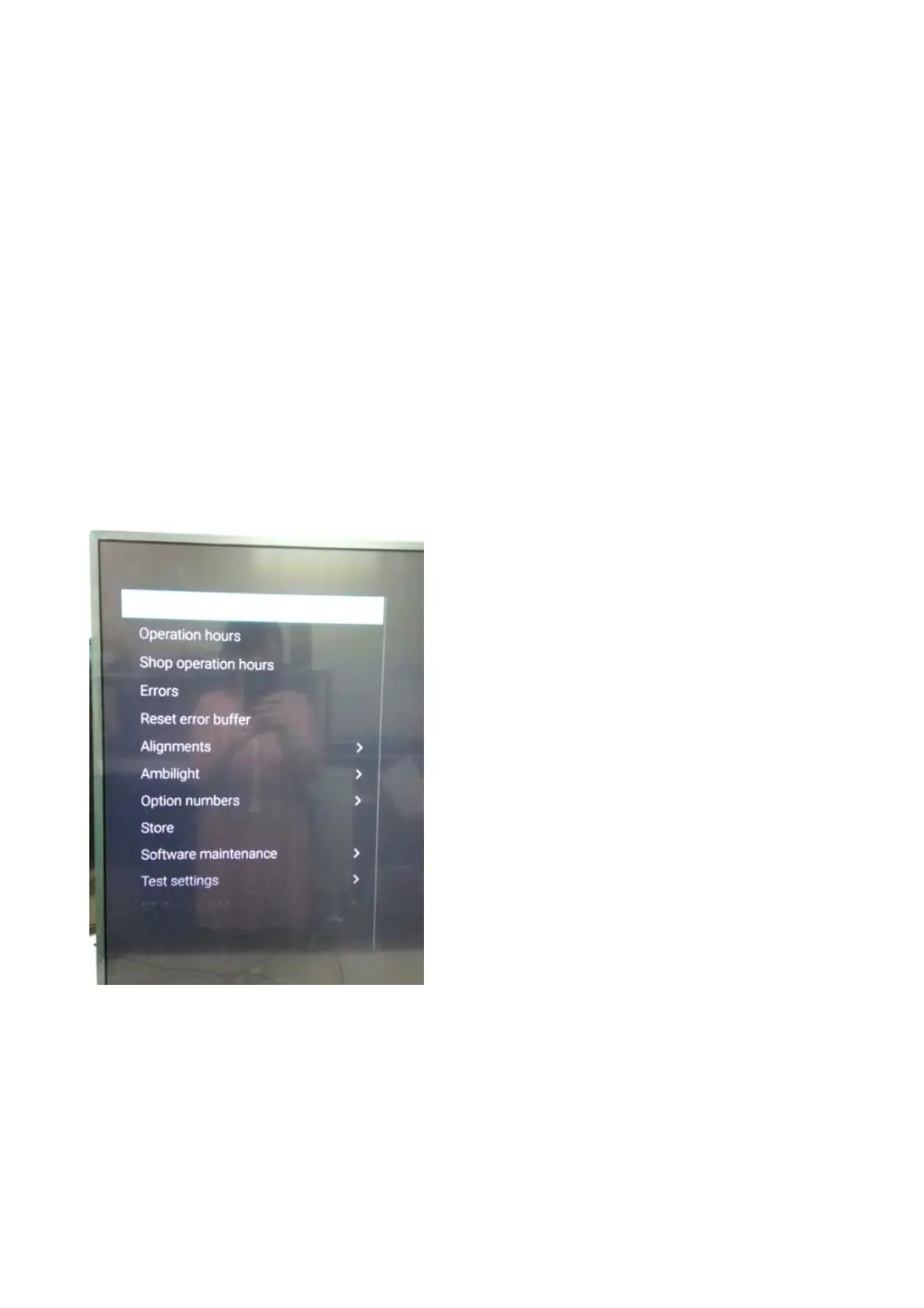 Note: When the TV is switched “off” by a power interrupt while in SAM, the TV will show up in “normal operation mode” as soon as the power is