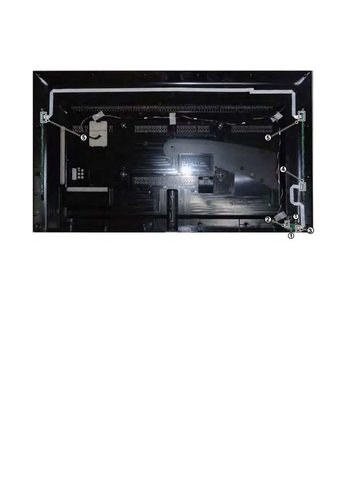 1. Gently release the clamps and unplug the two connectors [5] that secure the ambilight panels. Release the clips from the FFC connector that connect