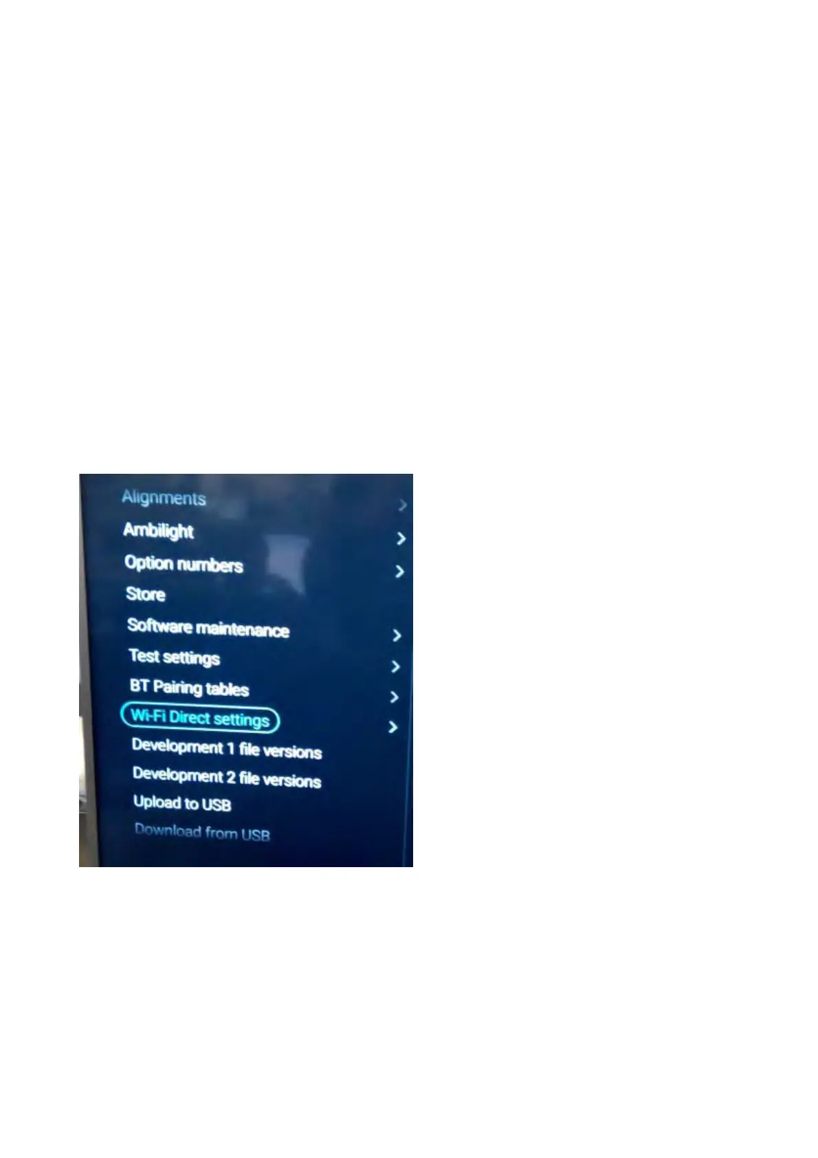 Note: When the TV is switched “off” by a power interrupt while in SAM, the TV will show up in “normal operation mode” as soon as the power is