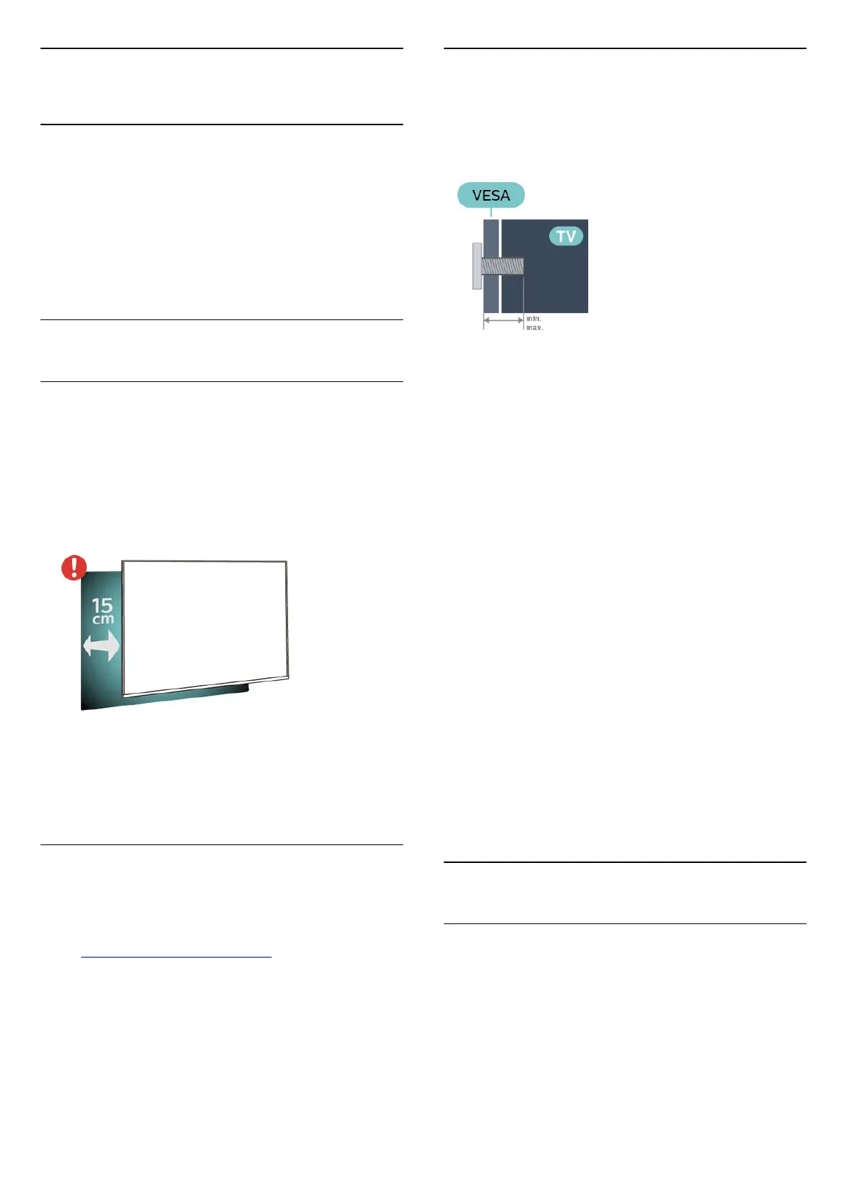 • Position the TV up to 15 cm away from the wall.