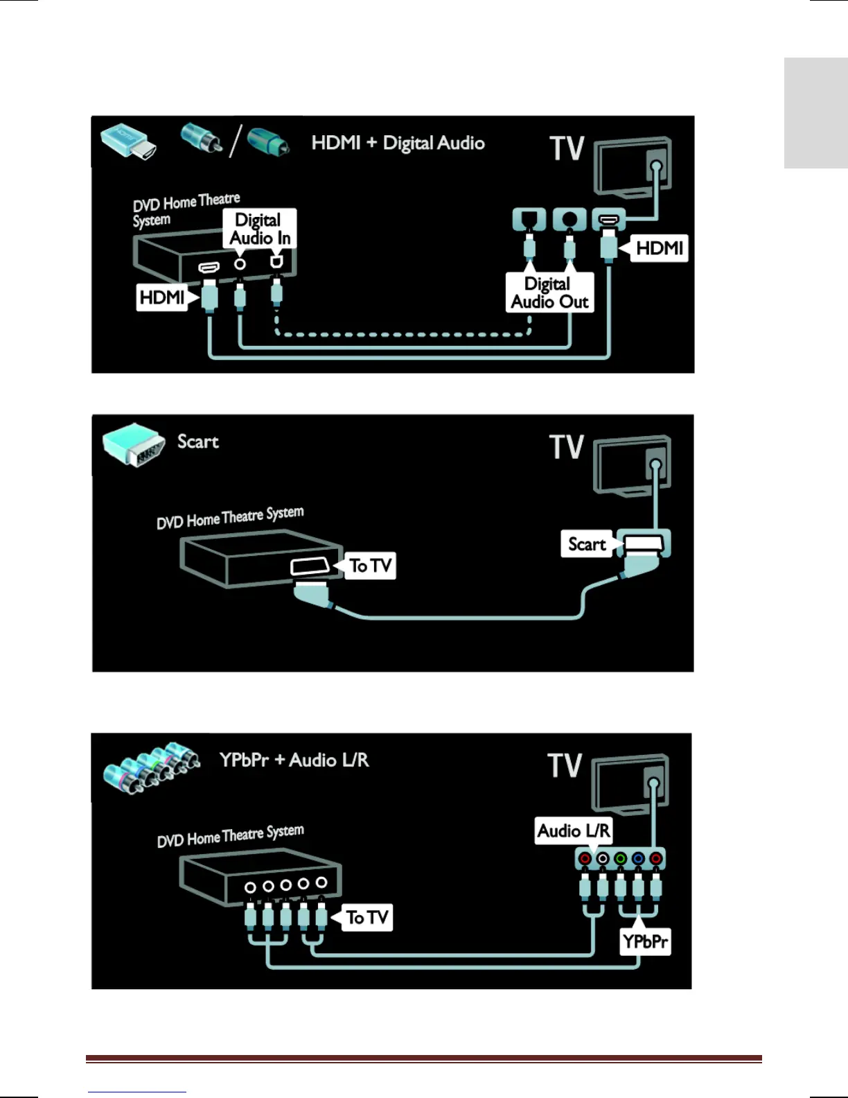 Connect the home theater with a component cable (Y Pb Pr) and an audio L/R