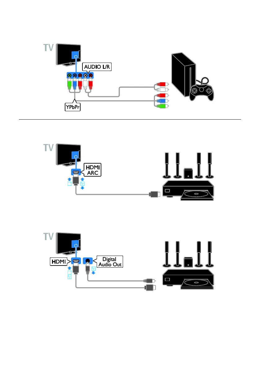 Connect the game console to the TV with a component video cable (Y Pb Pr) and an audio L/R