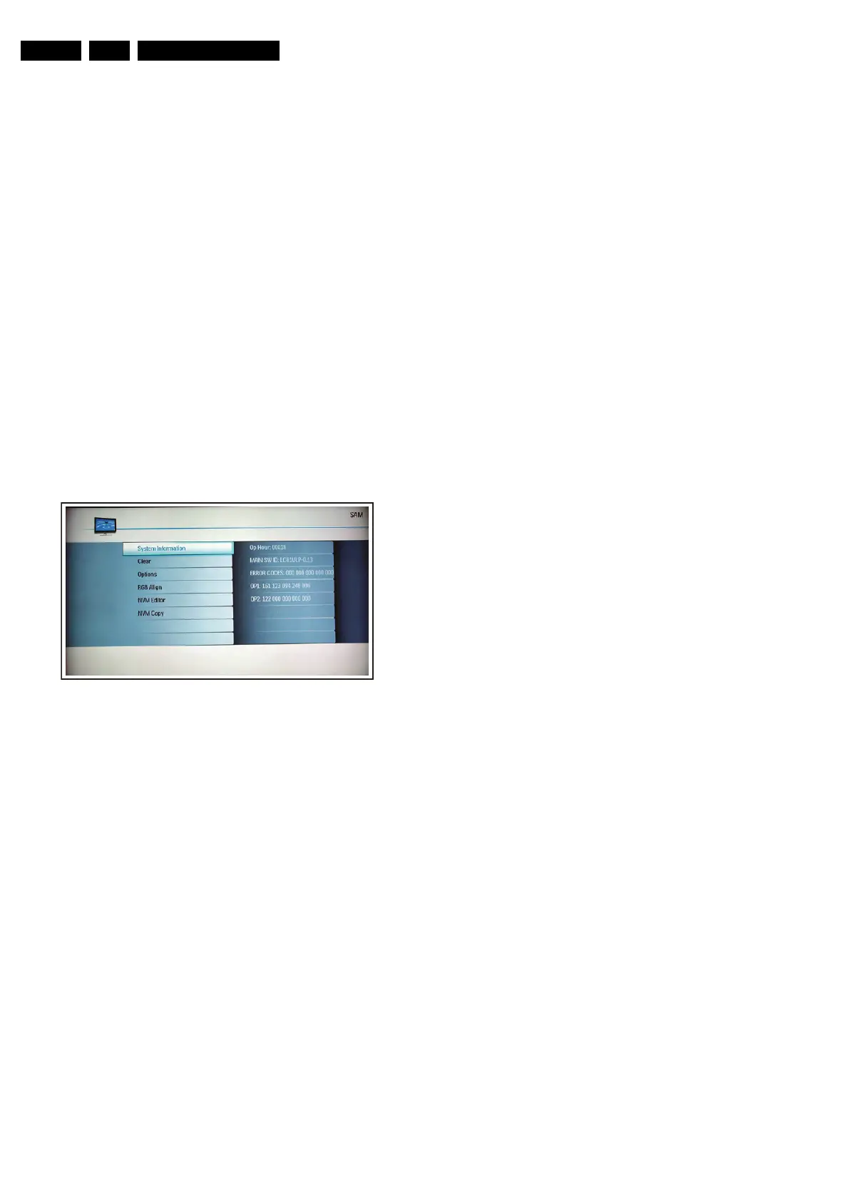 5. NVM Editor. To change the NVM data in the television set.