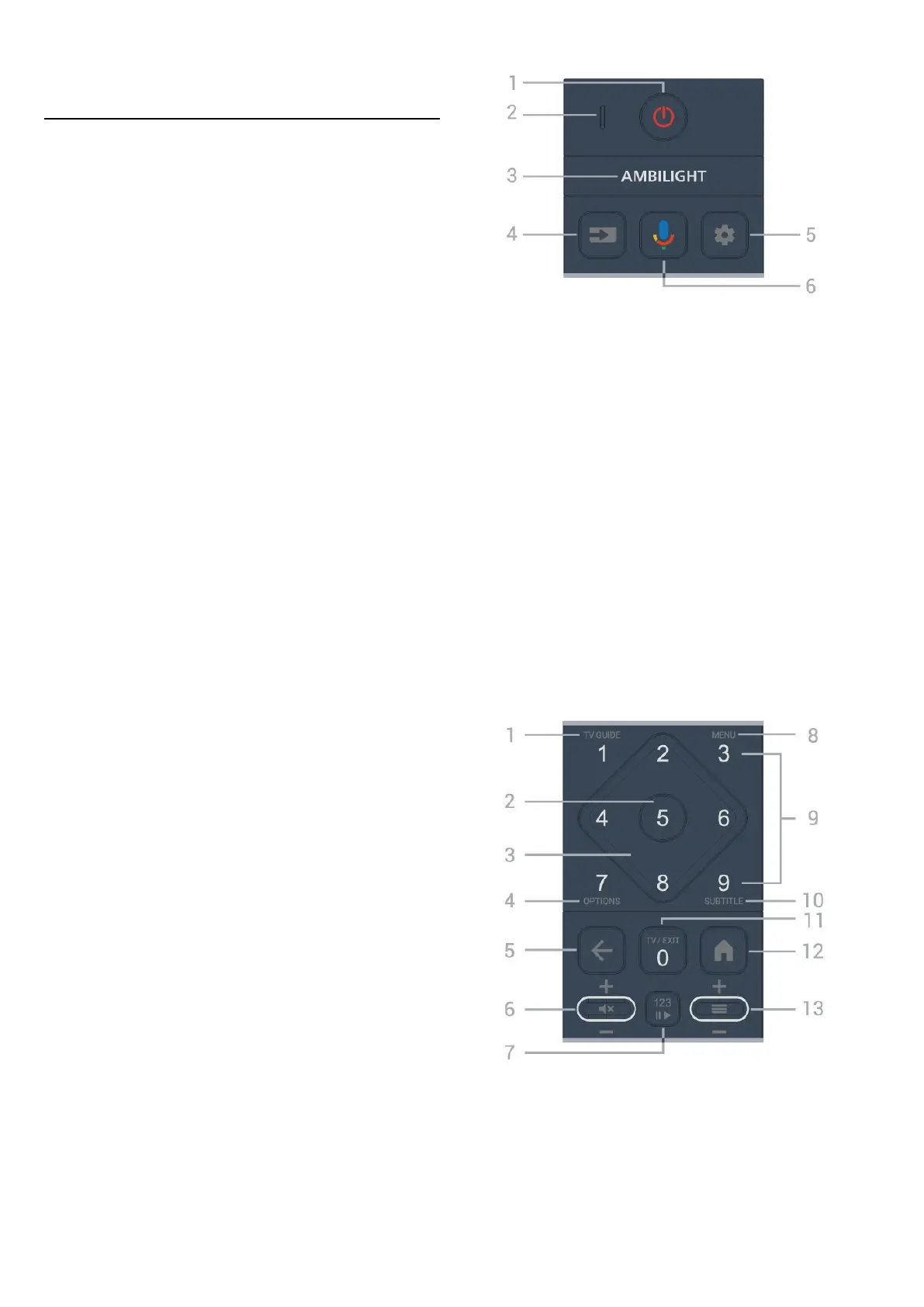 To switch the TV on or back to Standby. Long press for