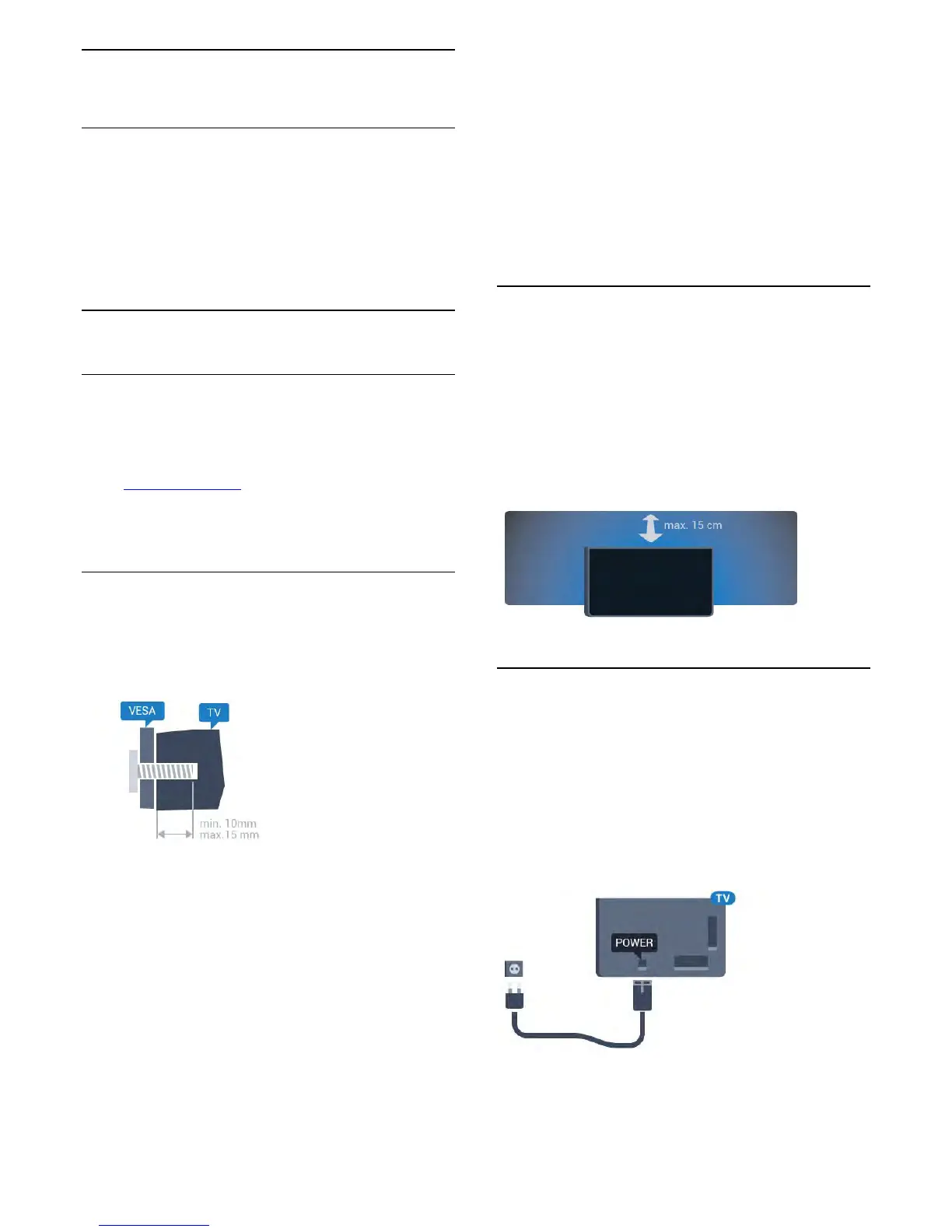 • Position the TV up to 15 cm away from the wall.
