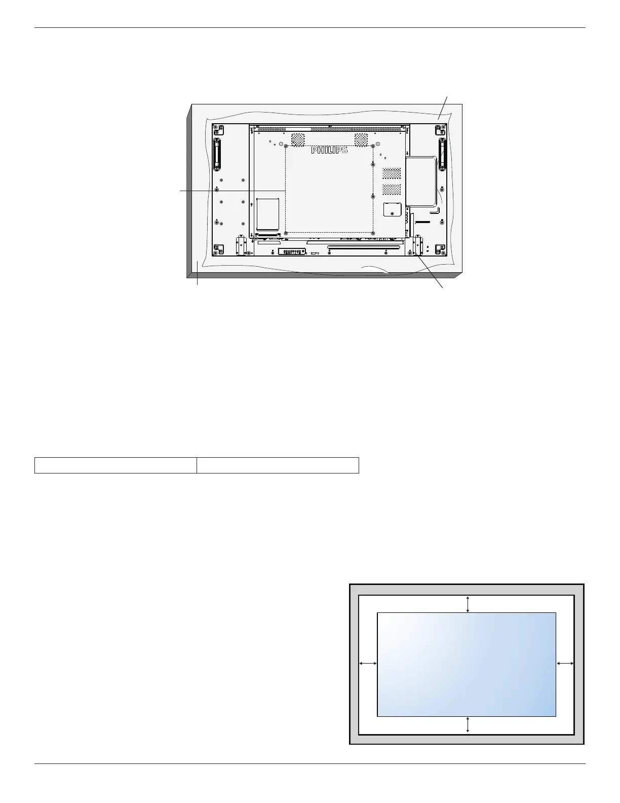 Leaveaspaceof100mmatthetop,rear,rightandleftofthedisplayforventilation.