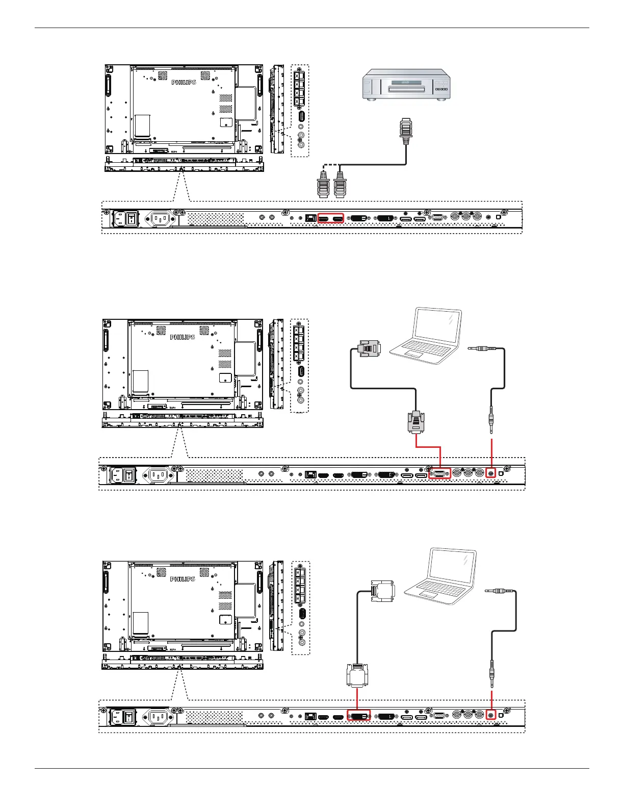 Philips 49BDL3005X - Connecting Video Sources; Connecting PCs via VGA and DVI