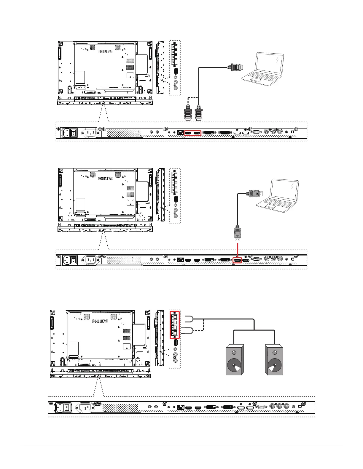 Philips 49BDL3005X - Using HDMI Input; Using Displayport Input; Connecting Audio Equipment; Connecting External Speakers