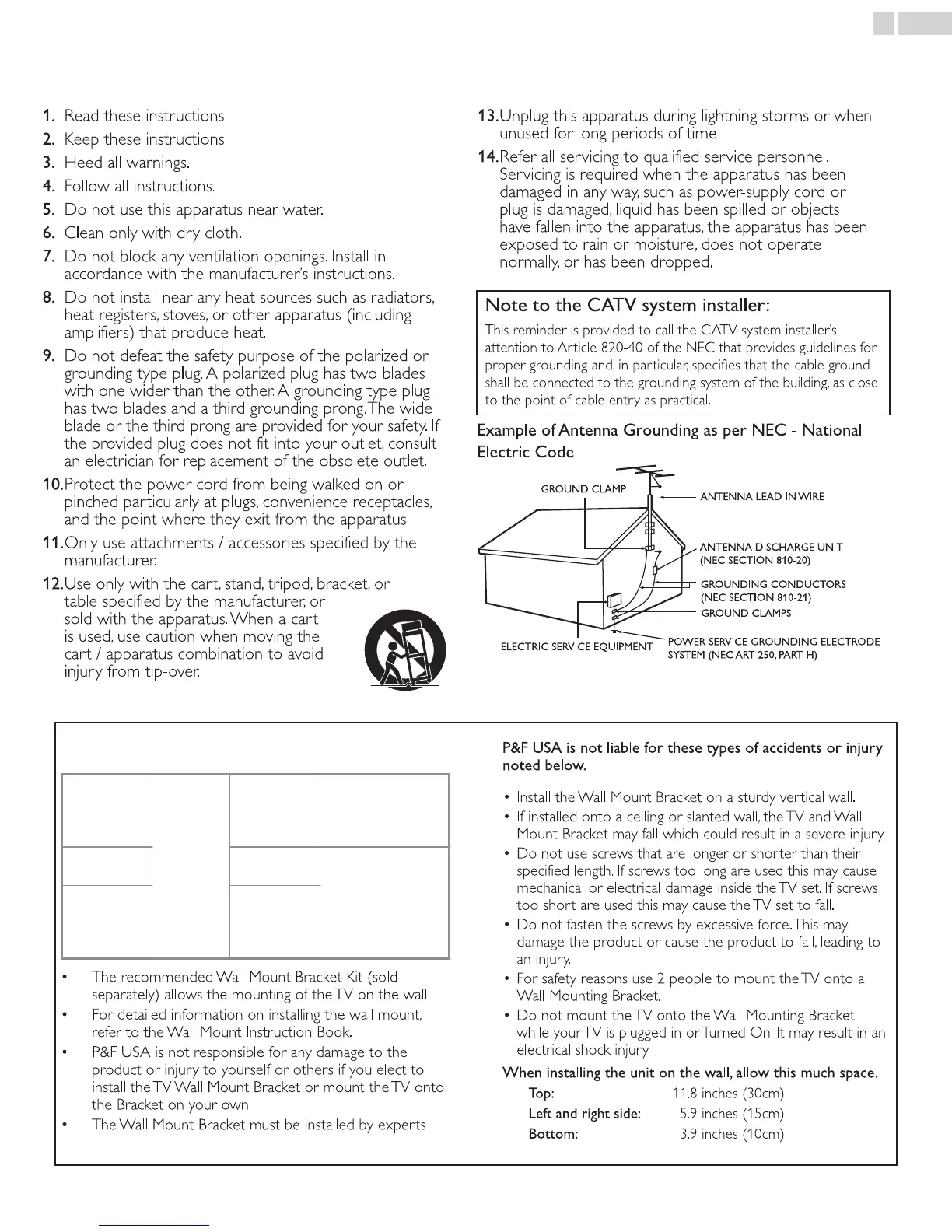 • If installed onto a ceiling or slanted wall, the TV and Wall