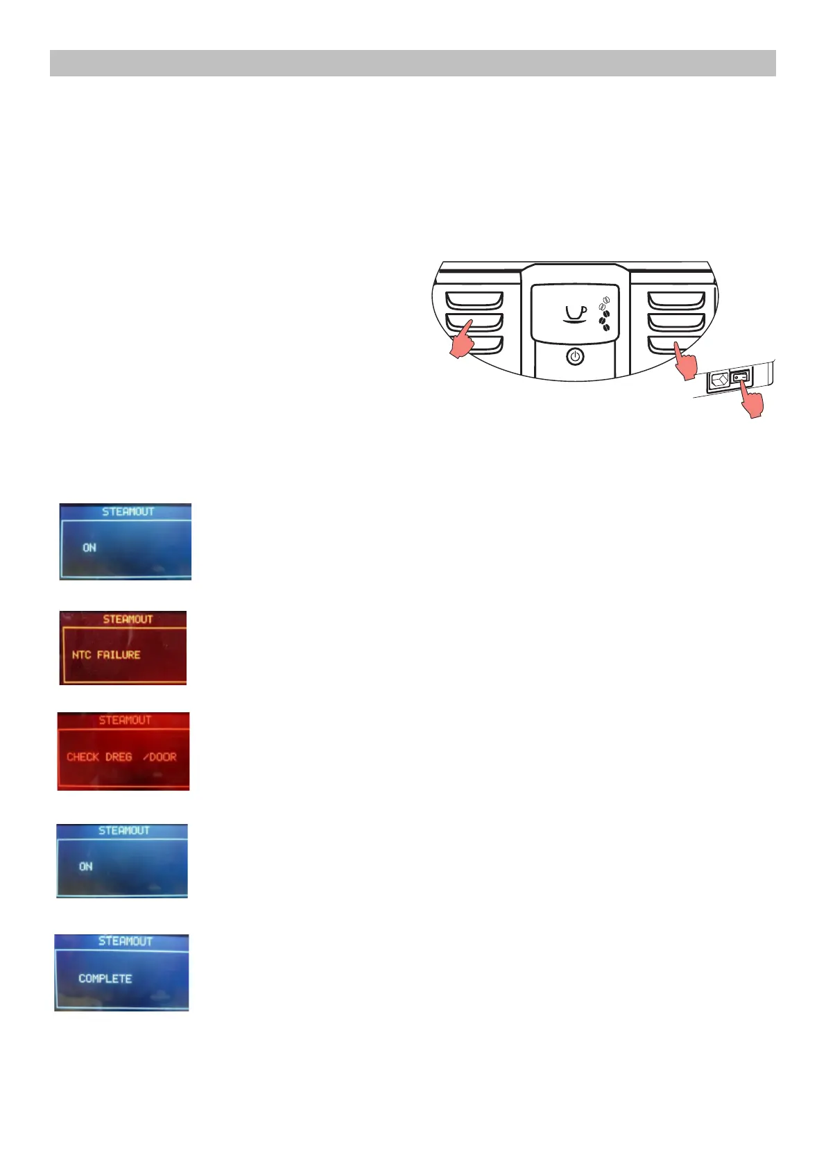 The machine enters in Steam-Out mode by holding