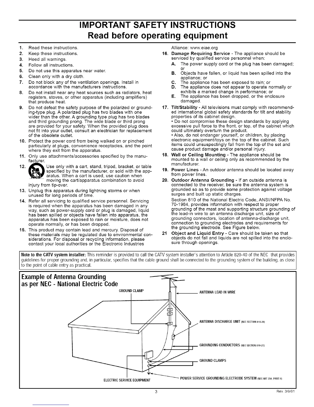 Note to the CATVsystem installer: This reminder is provided to call the CATVsystem installer's attention to Article 820-40 of the NEC that provides