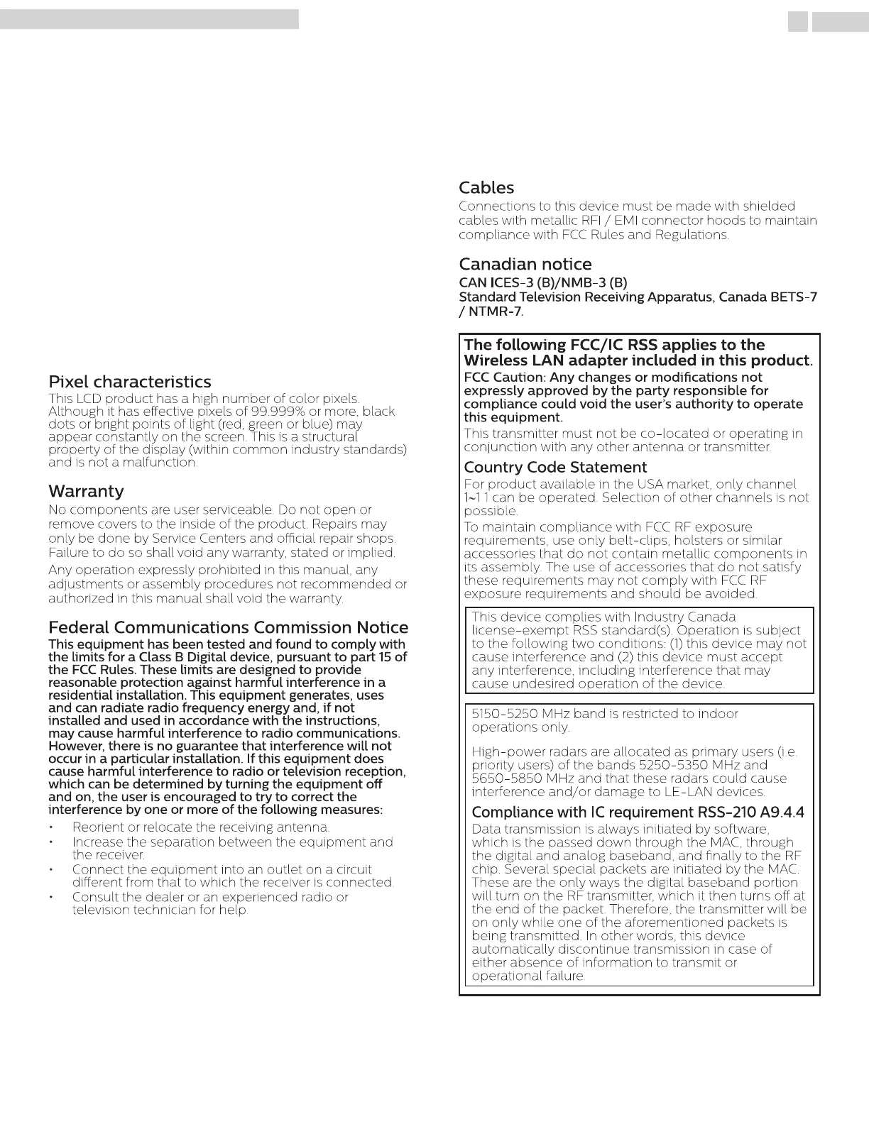 Compliance with IC requirement RSS-210 A9.4.4