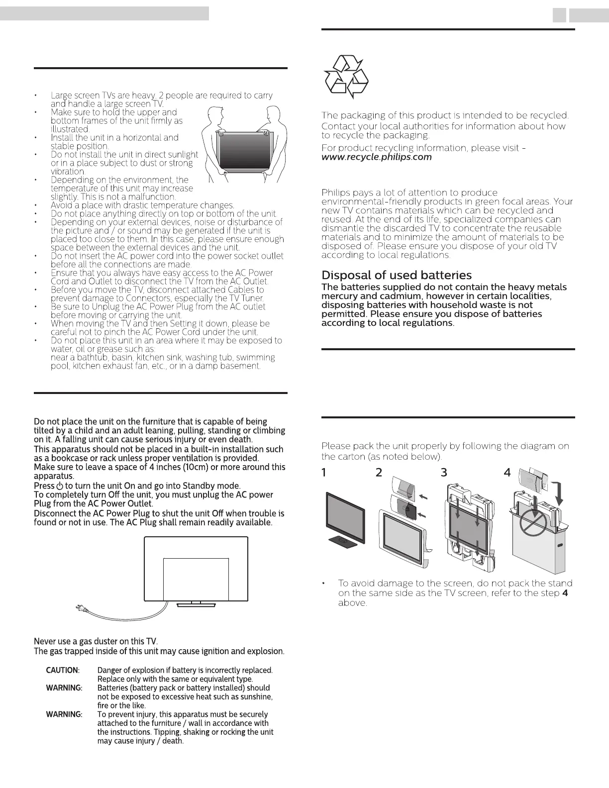 • Large screen TVs are heavy. 2 people are required to carry