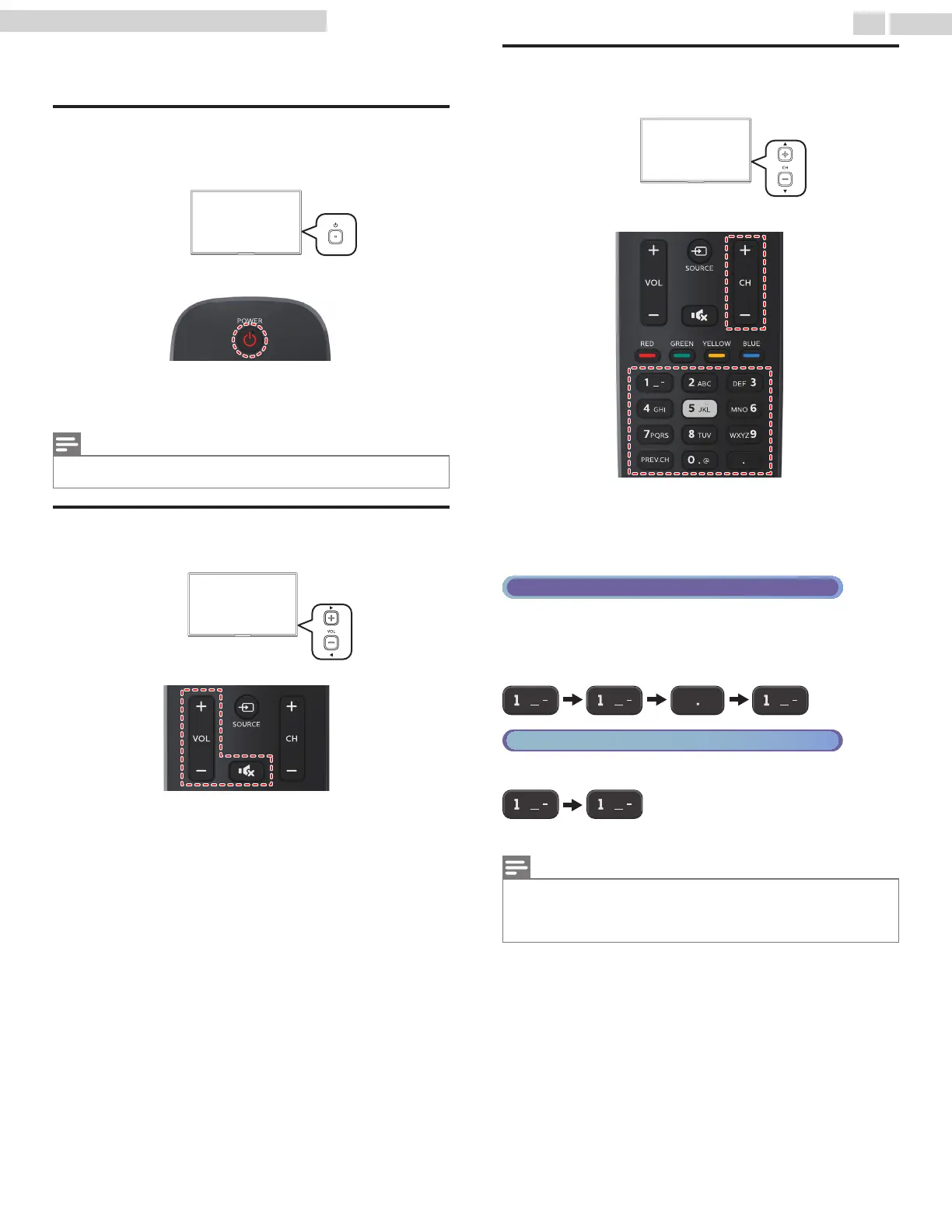 For digital channels, press a number followed by a dot “•” and the