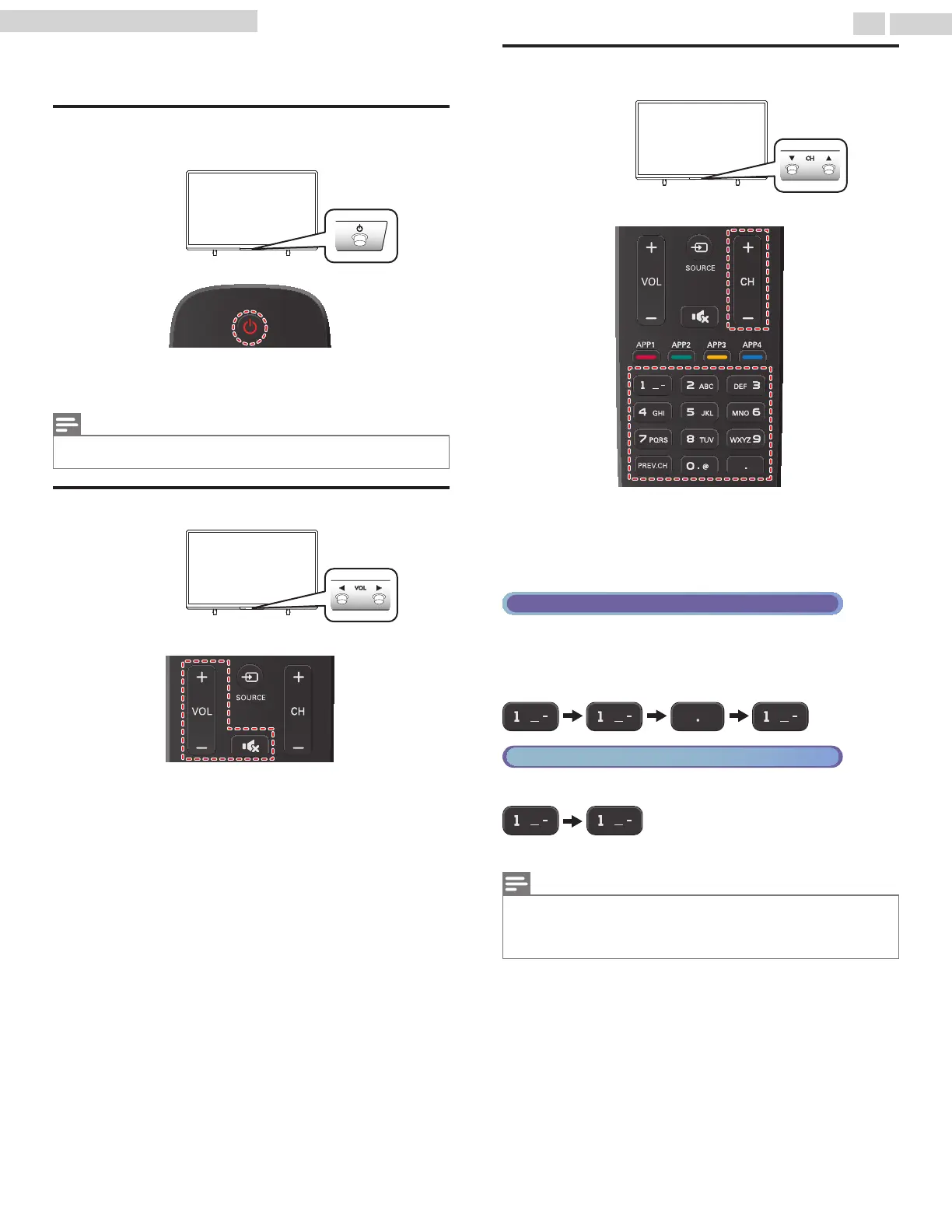 For digital channels, press a number followed by a dot “•” and the