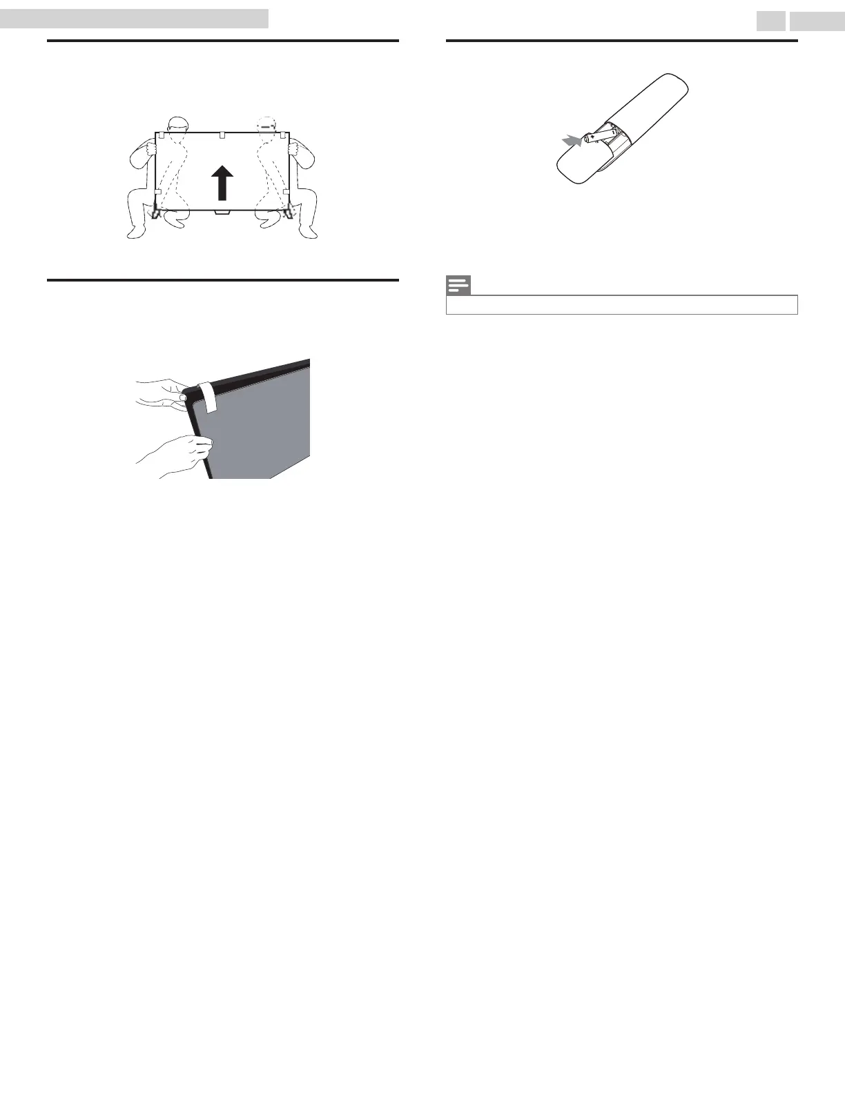 Carefully lift the TV set as shown in the illustration and place it onto a