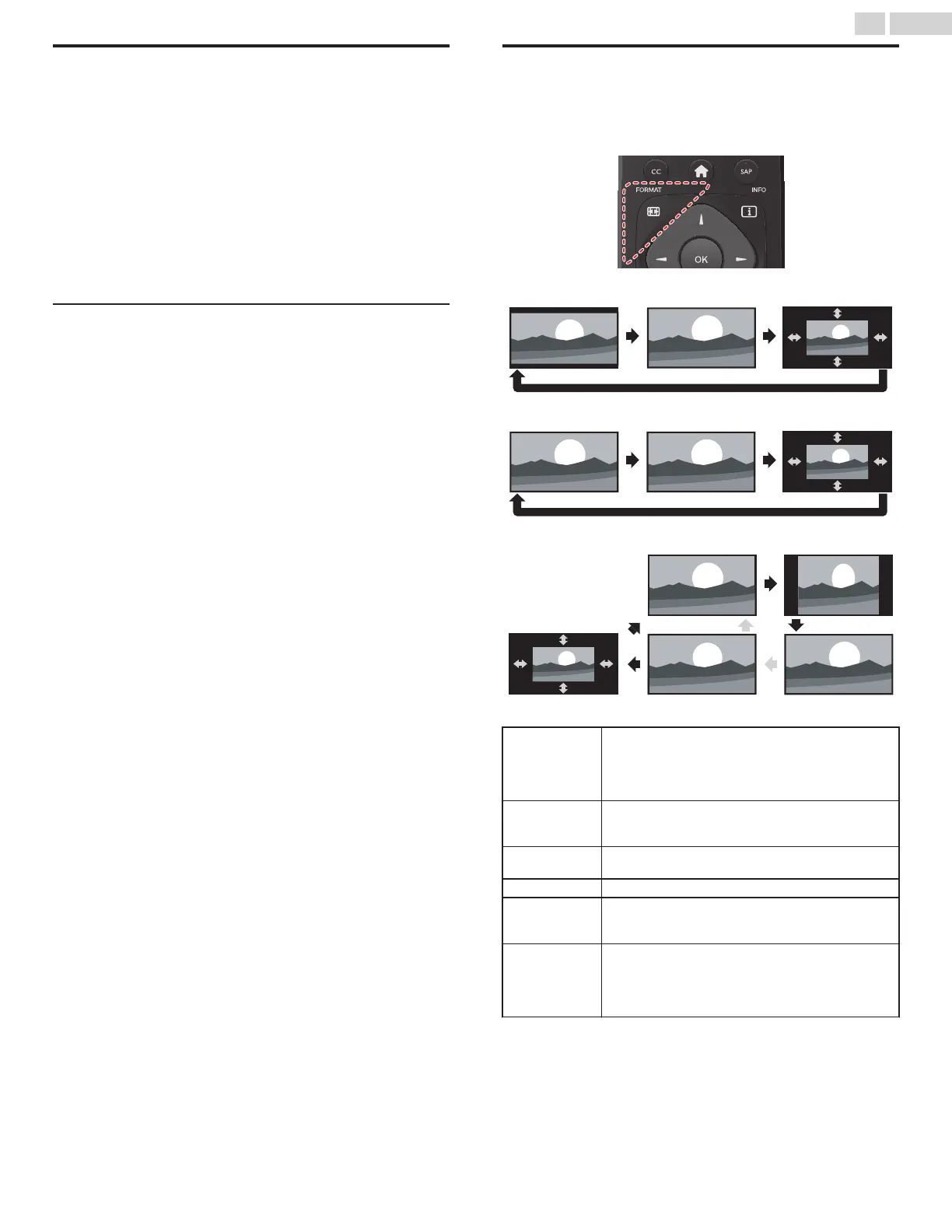 Press FORMAT repeatedly to switch the TV aspect ratio.