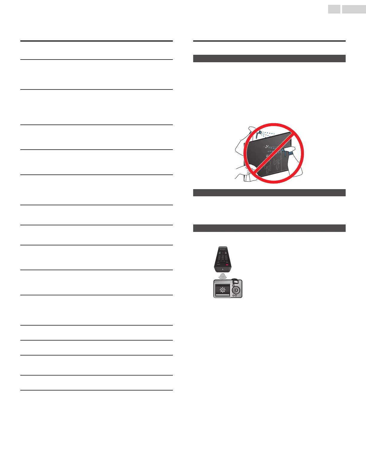 Do not spray any liquids on the screen or other exterior surfaces of this