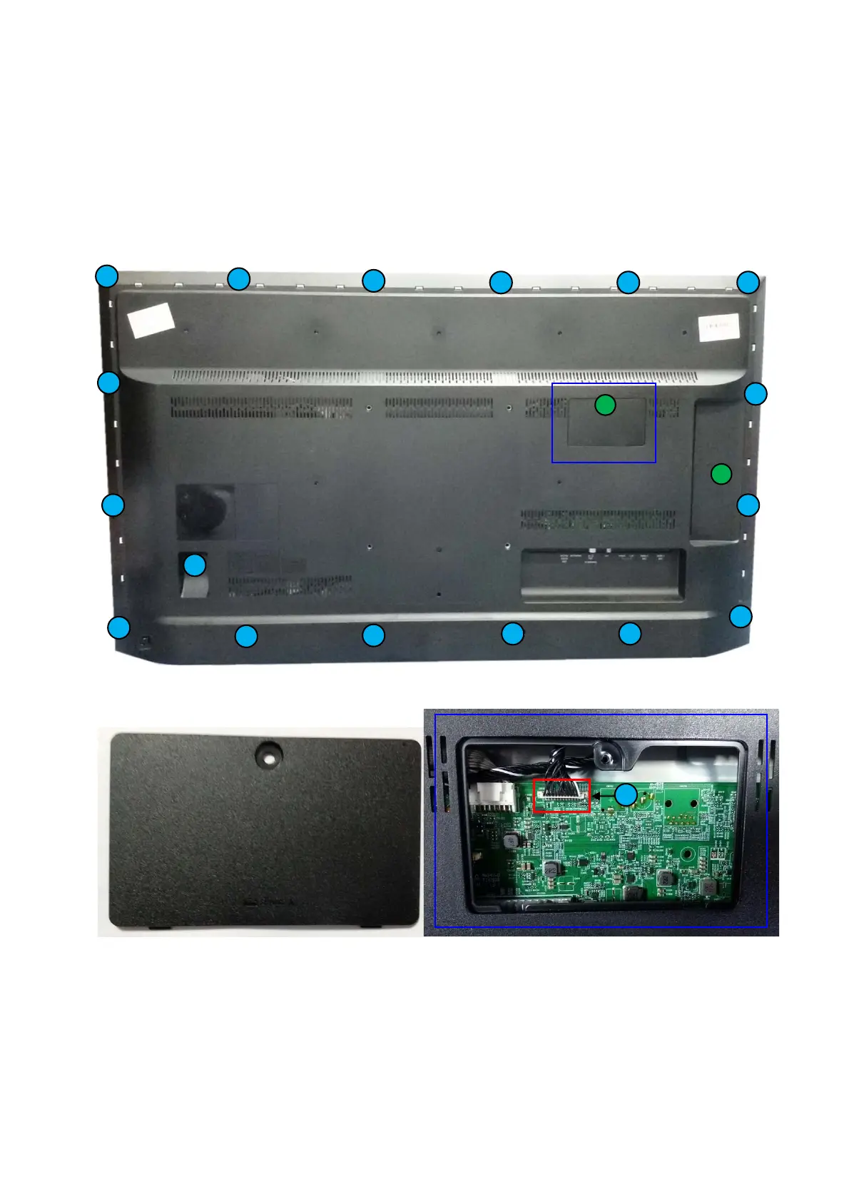 3. Gently lift the rear cover from the TV. Make sure that wires and cables are not damaged while lifting the rear cover from the set.