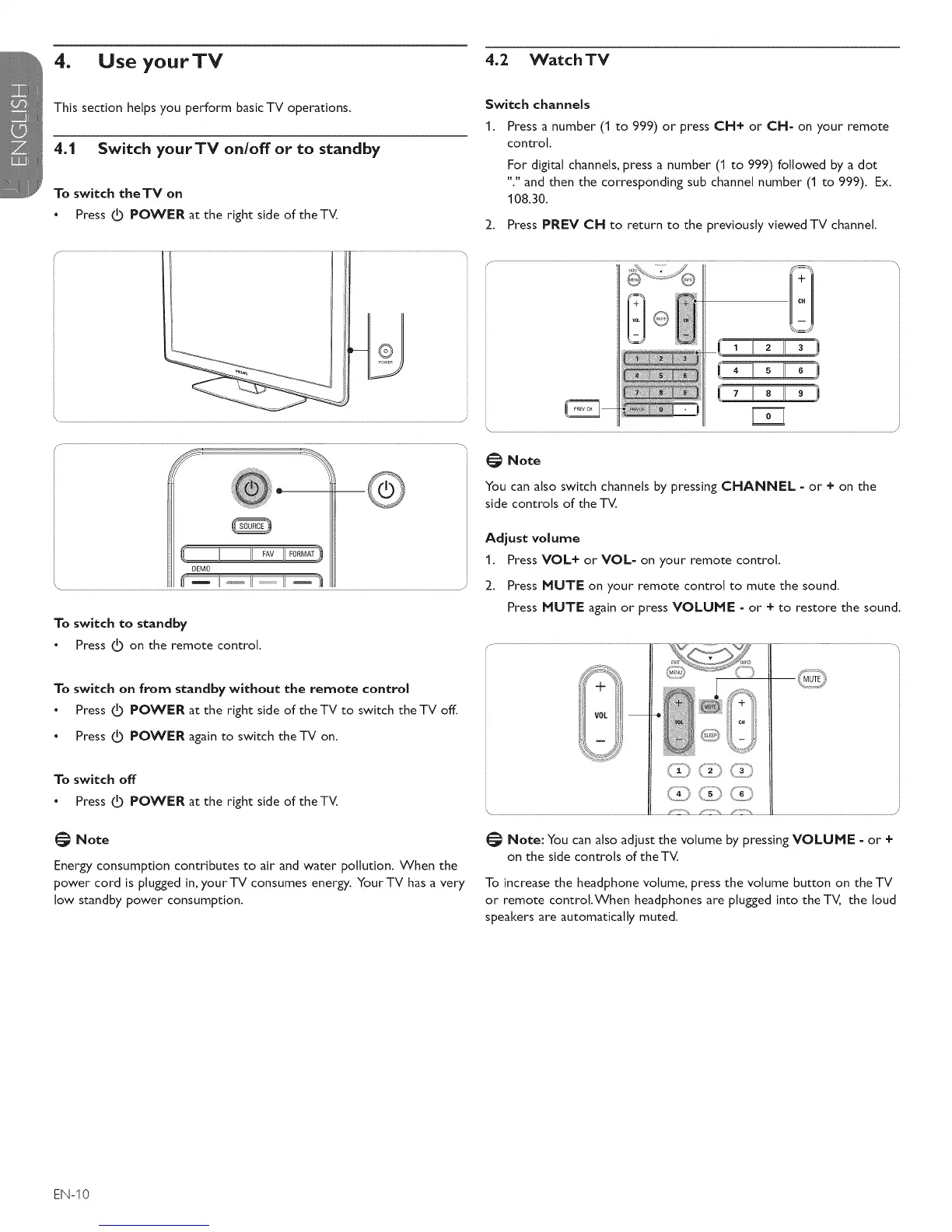 4.1 Switch yourTV on/off or to standby