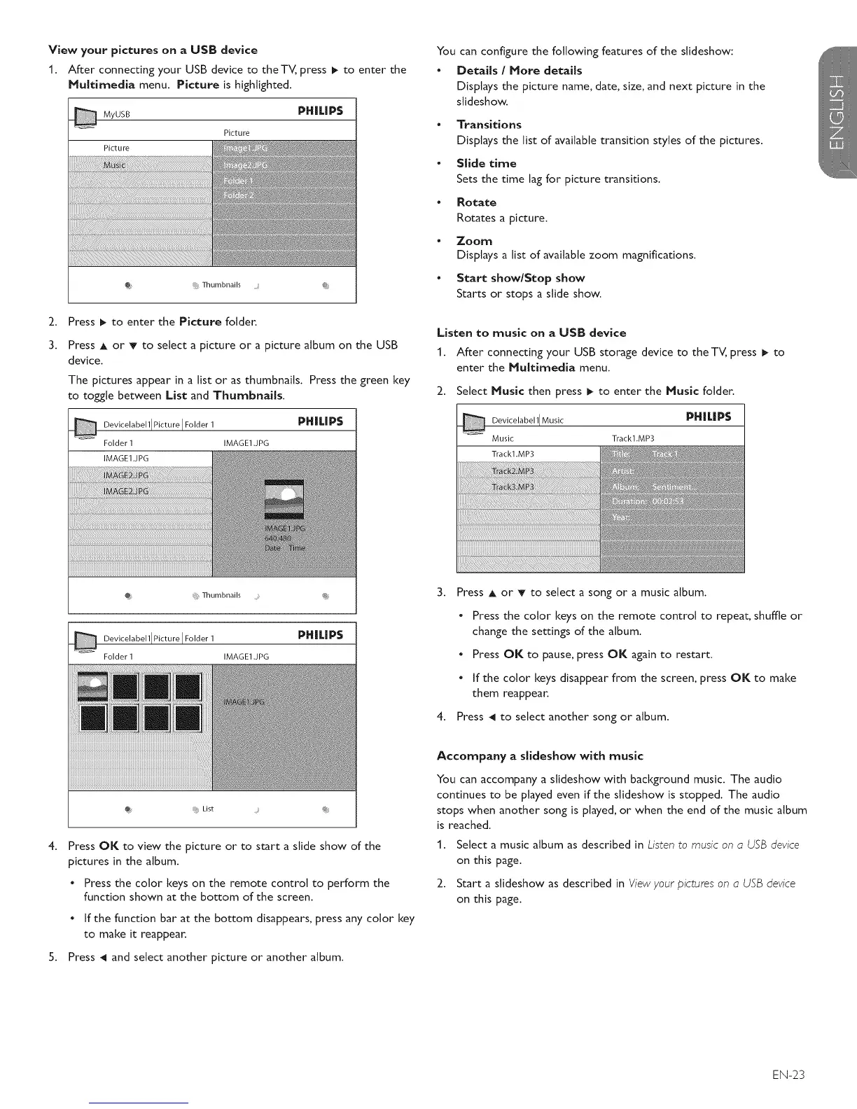 2. Start a slideshow as described in View your pictures on a USB device