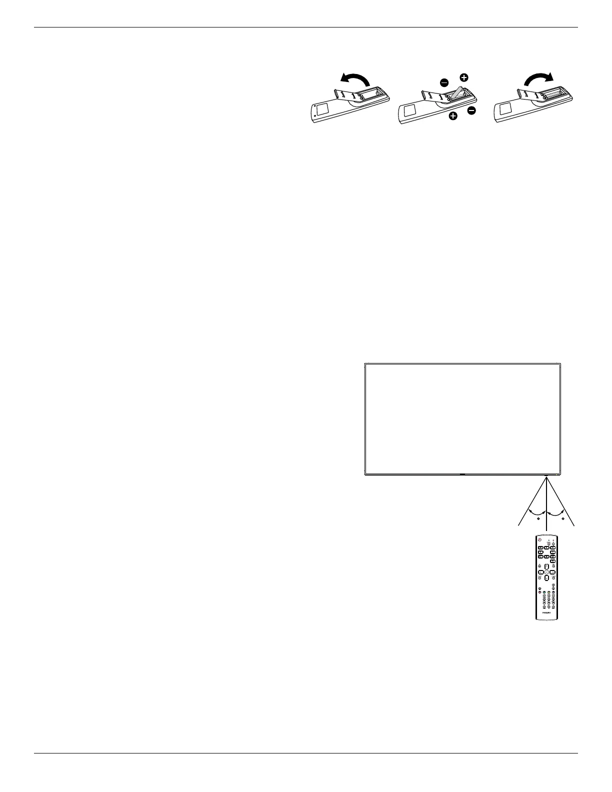 NOTE: Ifyoudonotintendtousetheremotecontrolforalongperiod,removethebatteries.