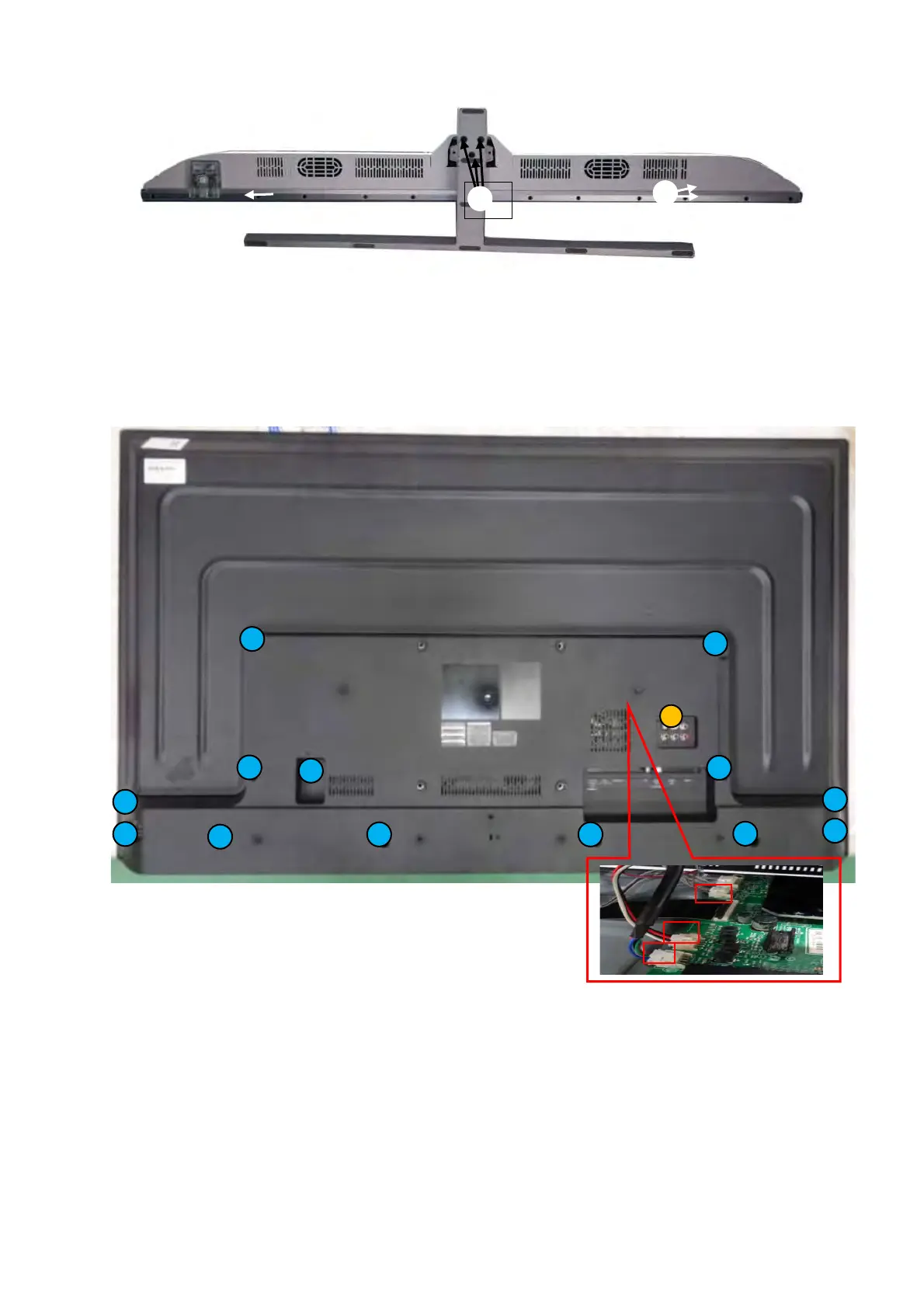 1. Remove all fixation screws [1] [2]and [3] that secure the Back cover assy.