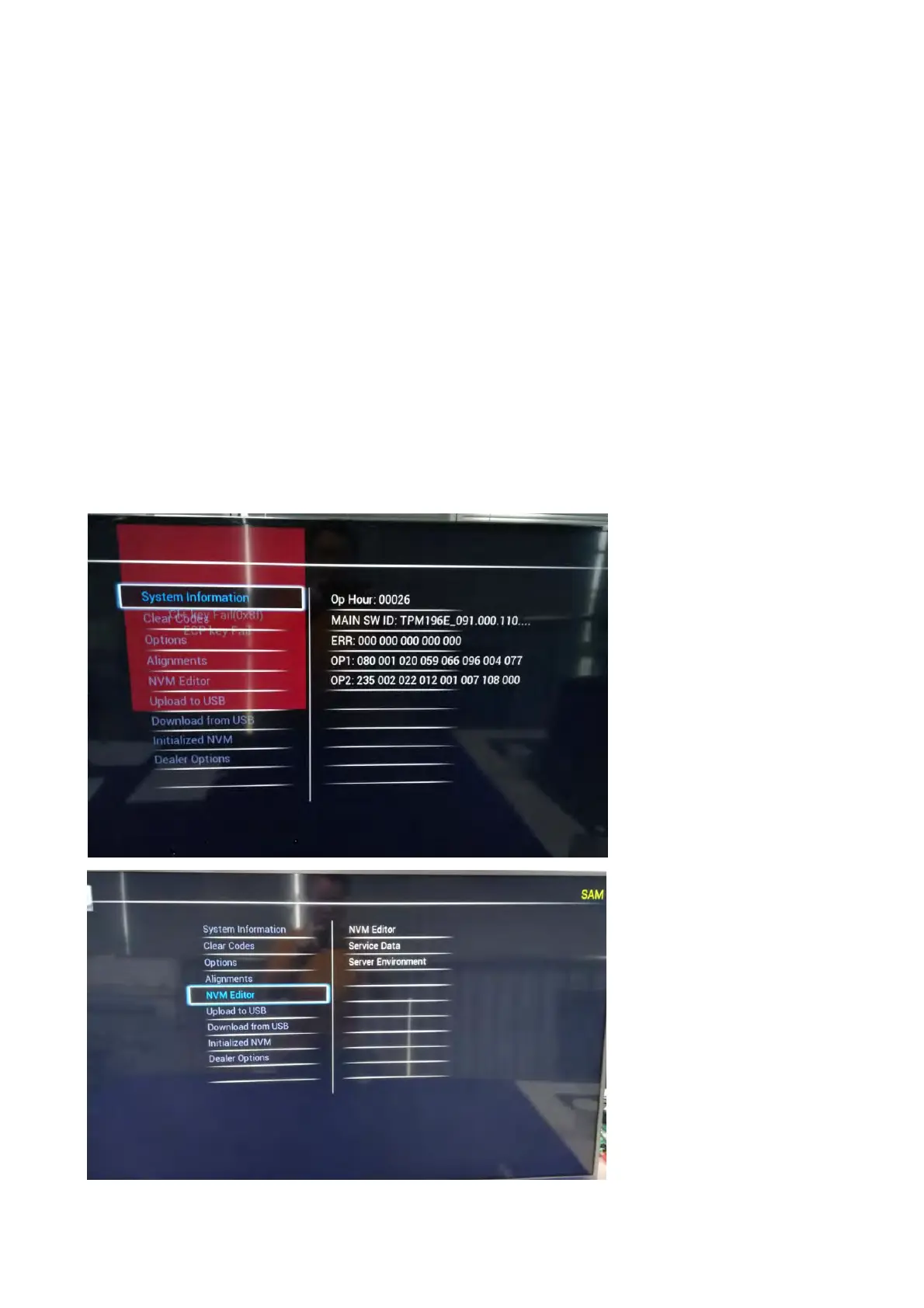 Note: When the TV is switched “off” by a power interrupt while in SAM, the TV will show up in “normal operation mode” as soon as the power is