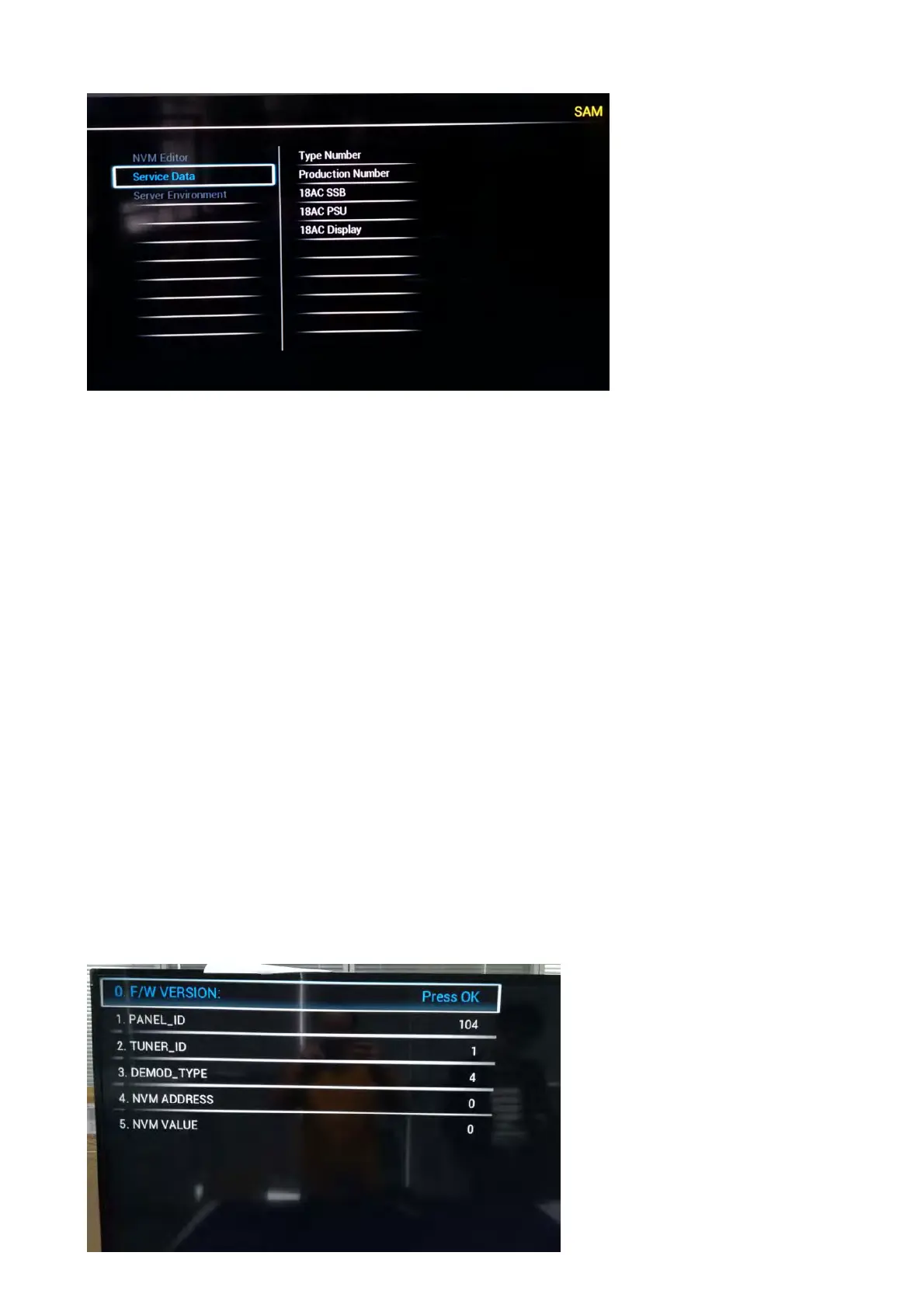 Remark: Under main menu “NVM editor”, select “Service Data”, you can use the UP/DOWN keys to view and change the set Type number, the set