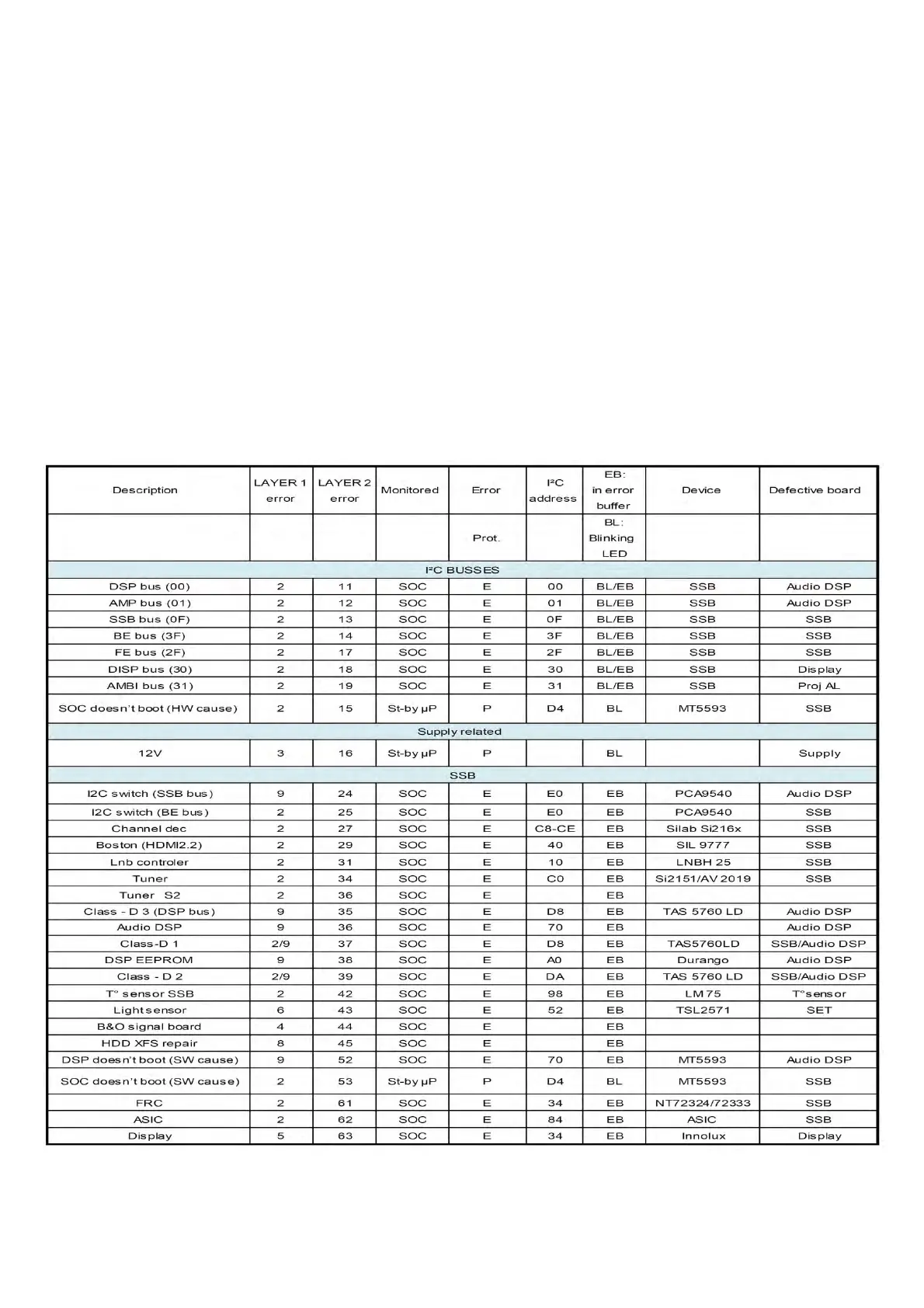 In this chassis only “layer 2” error codes are available and point to problems on the SSB. They are triggered by LED blinking