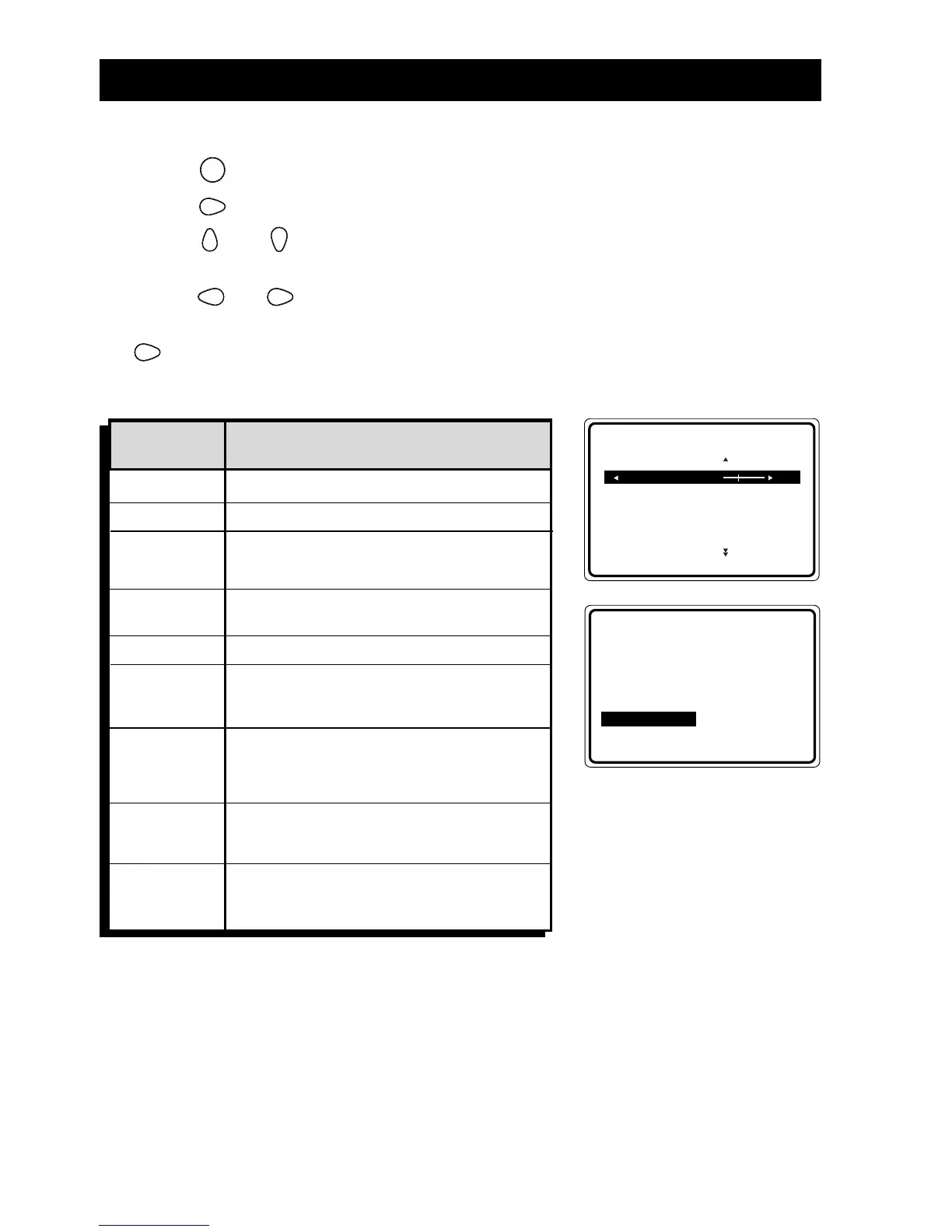 4. Press the or (CURSOR LEFT/RIGHT) buttons to adjust or change settings.