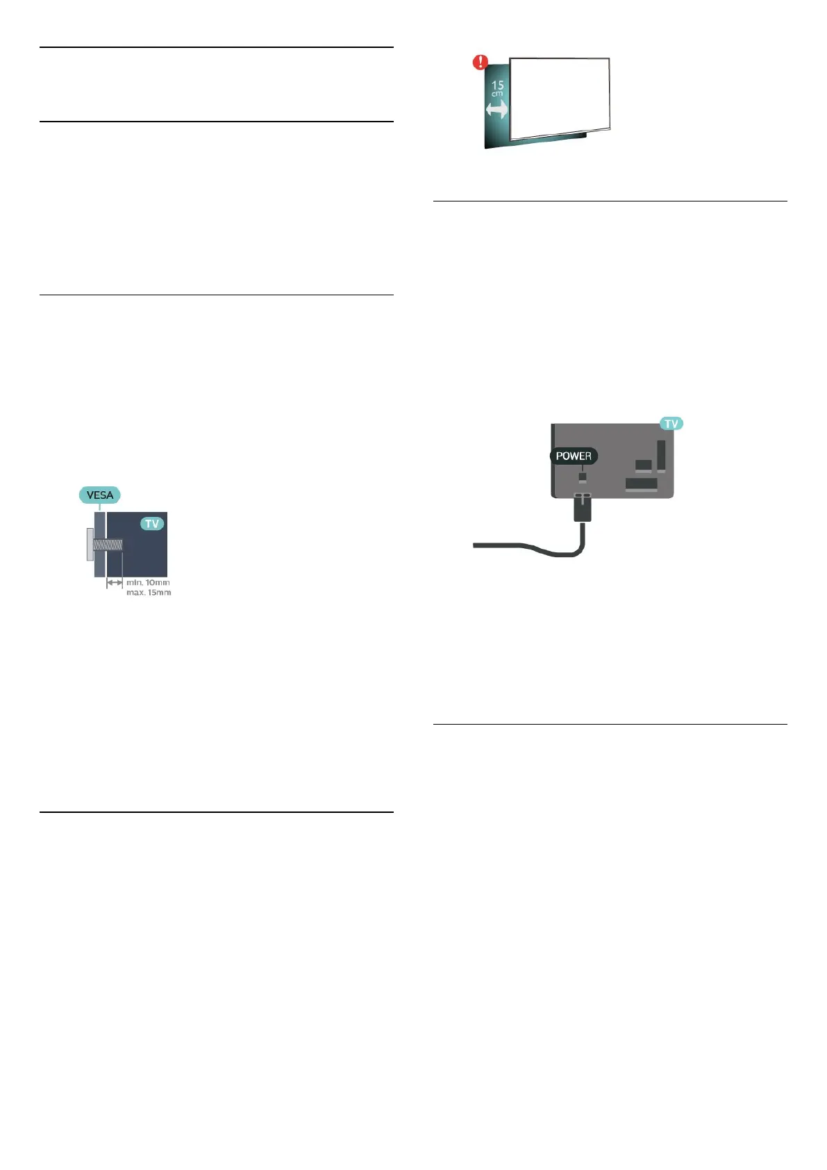 • Position the TV up to 15 cm away from the wall.