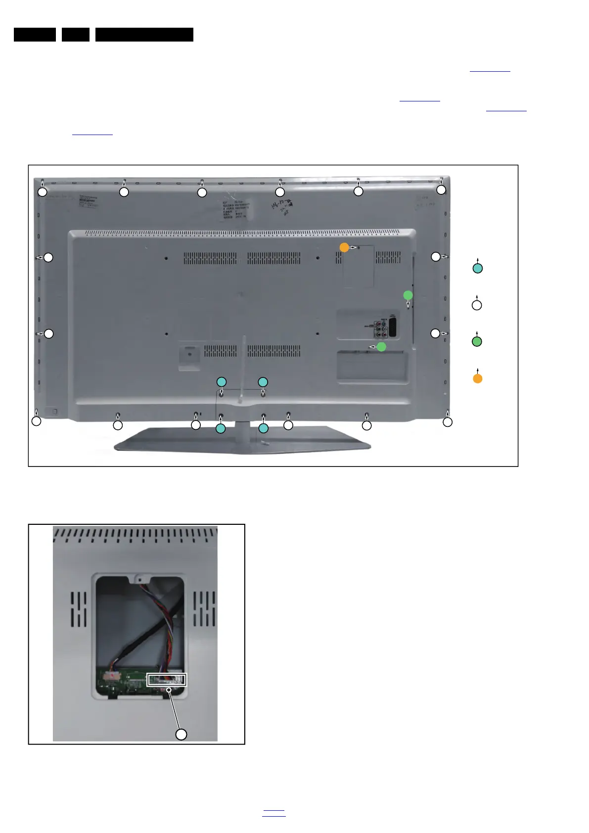 4. Gently lift the rear cover from the TV. Make sure that wires