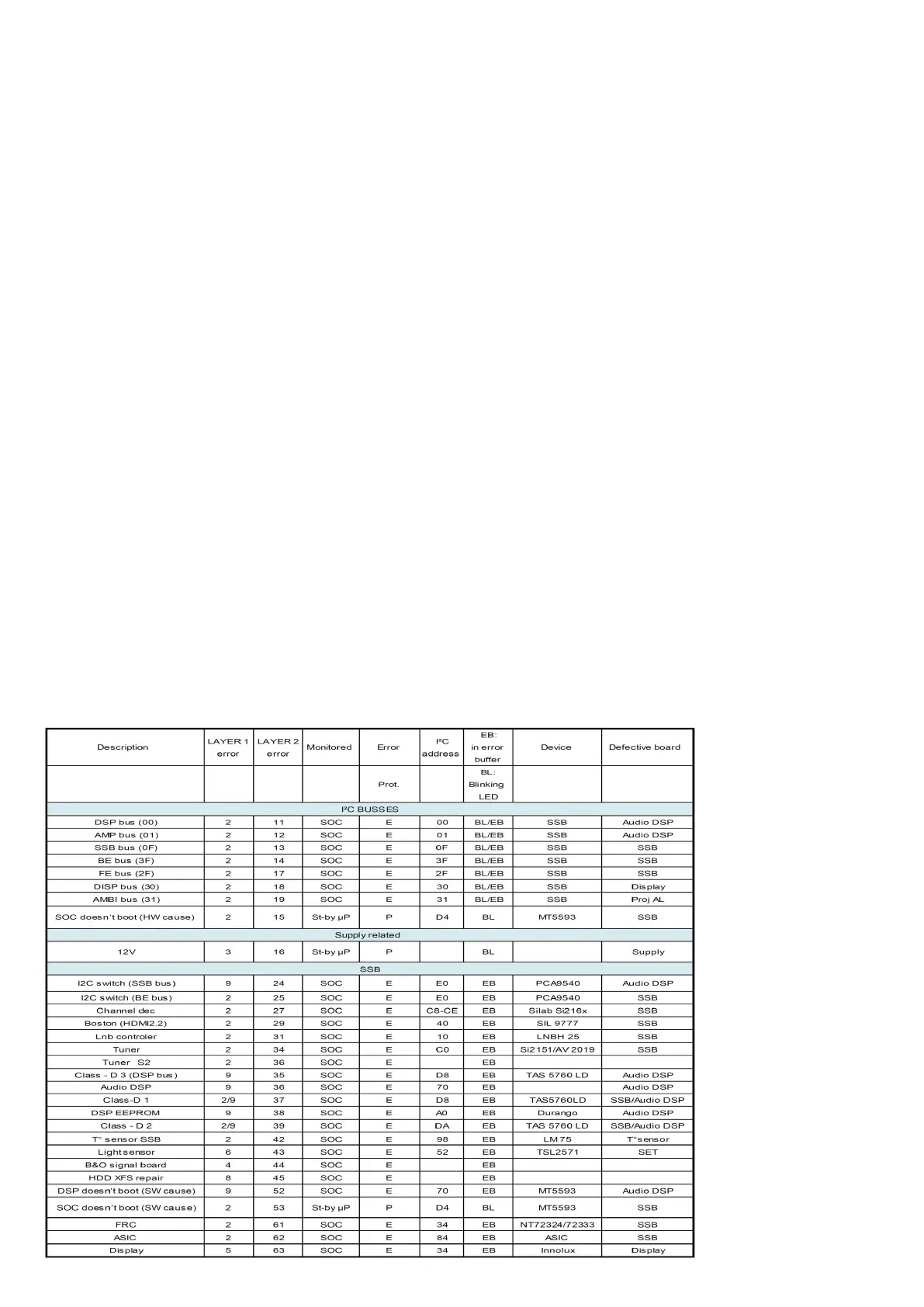 In this chassis only “layer 2” error codes are available and point to problems on the SSB. They are triggered by LED blinking