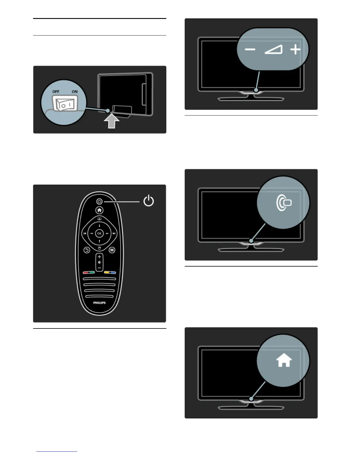 Switch the TV on or off with the power switch at the bottom of the