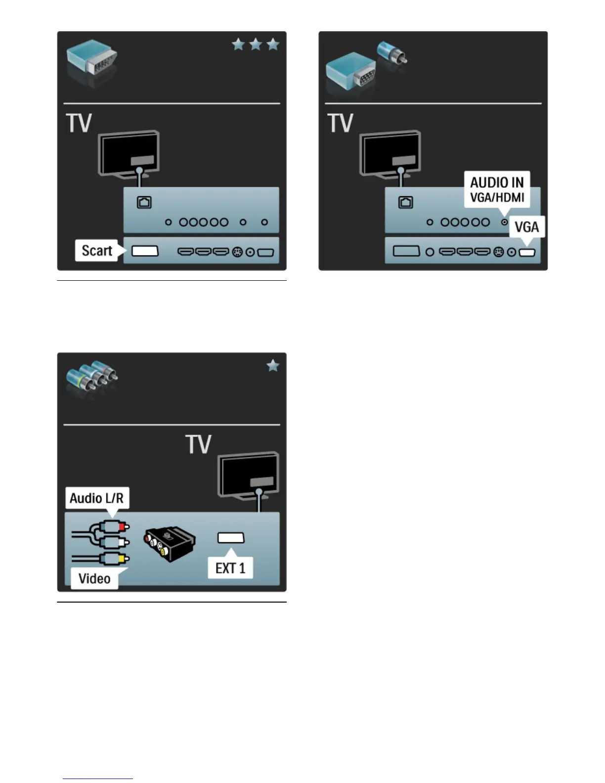 Audio L/R connections. Connect the adapter to the Scart connection