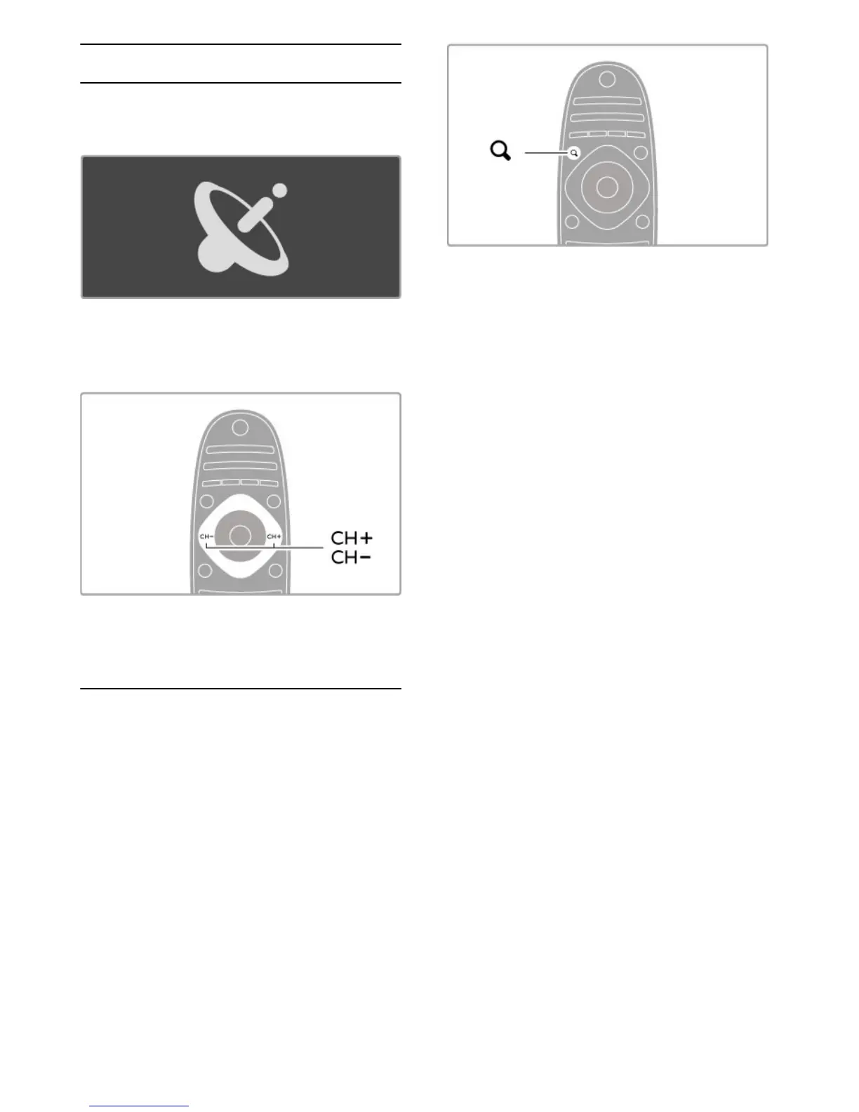 To switch satellite channels, press CH+ or CH- on the remote