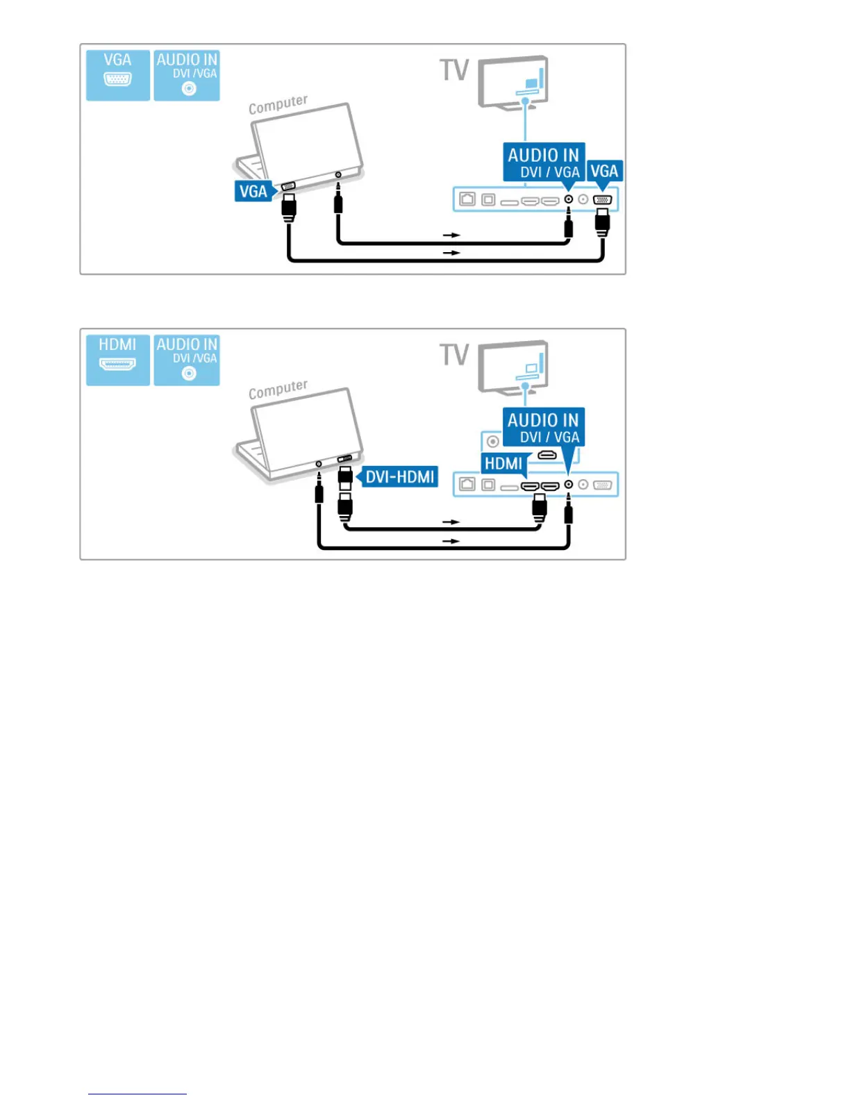 Use a DVI to HDMI adapter to connect the PC to HDMI and an