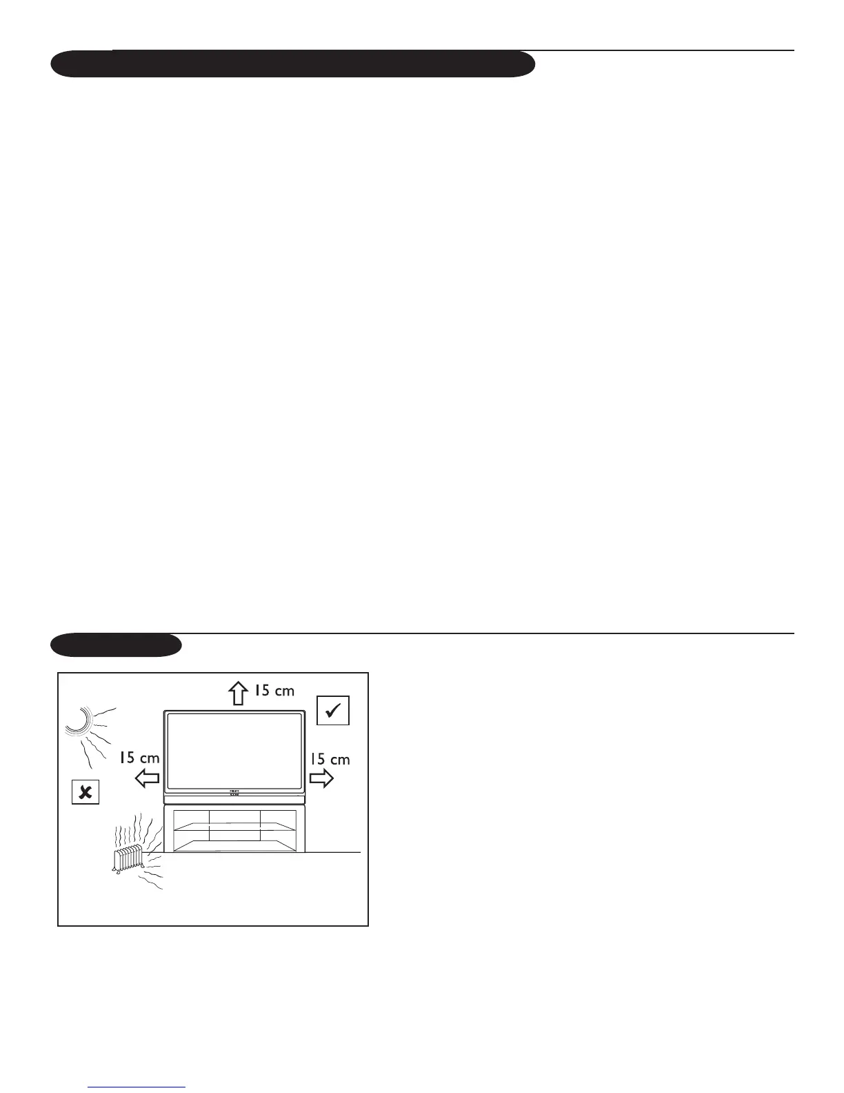 Deje un mínimo de 15 cm de espacio alrededor del TV.