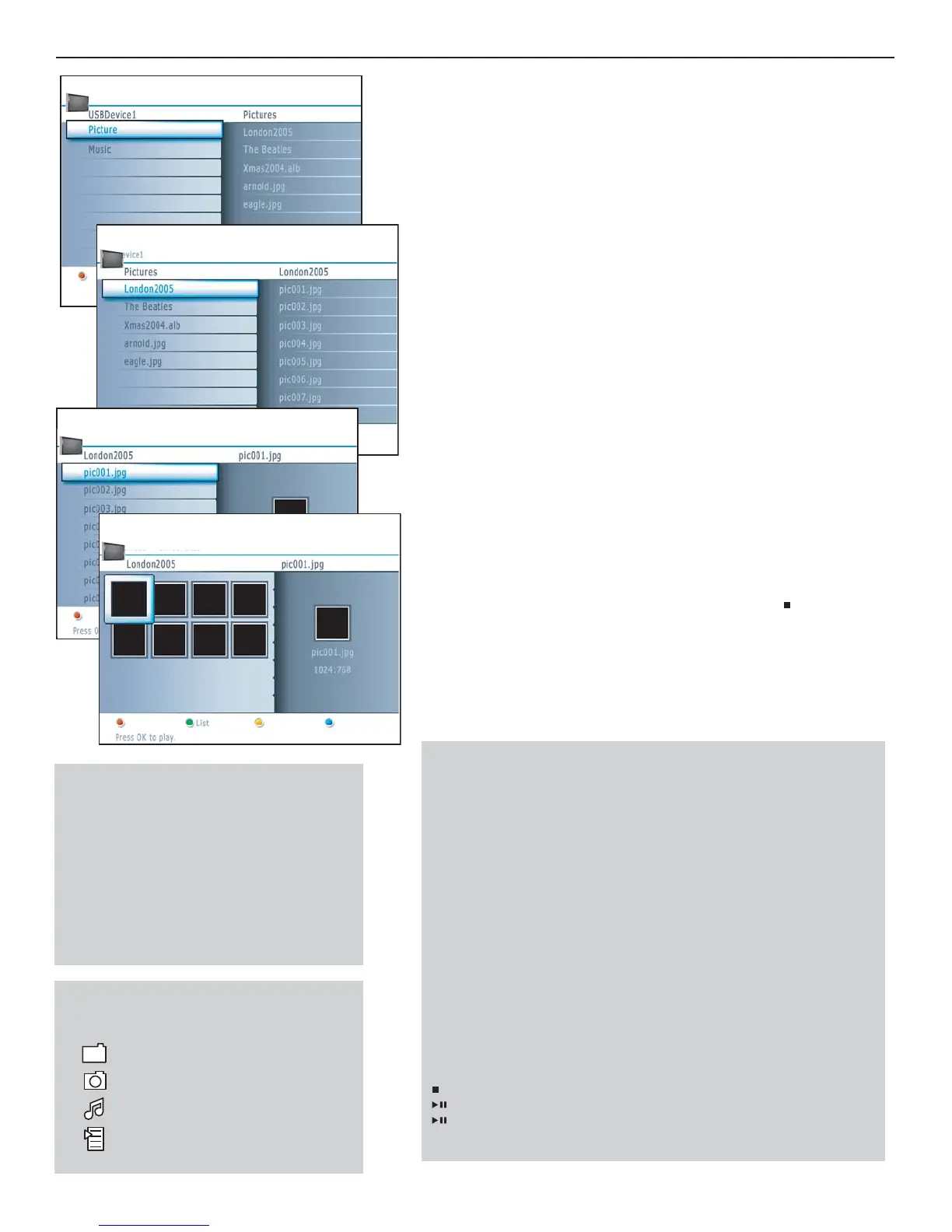 diapositivas o una reproducción de los archivos del directorio, álbum o lista